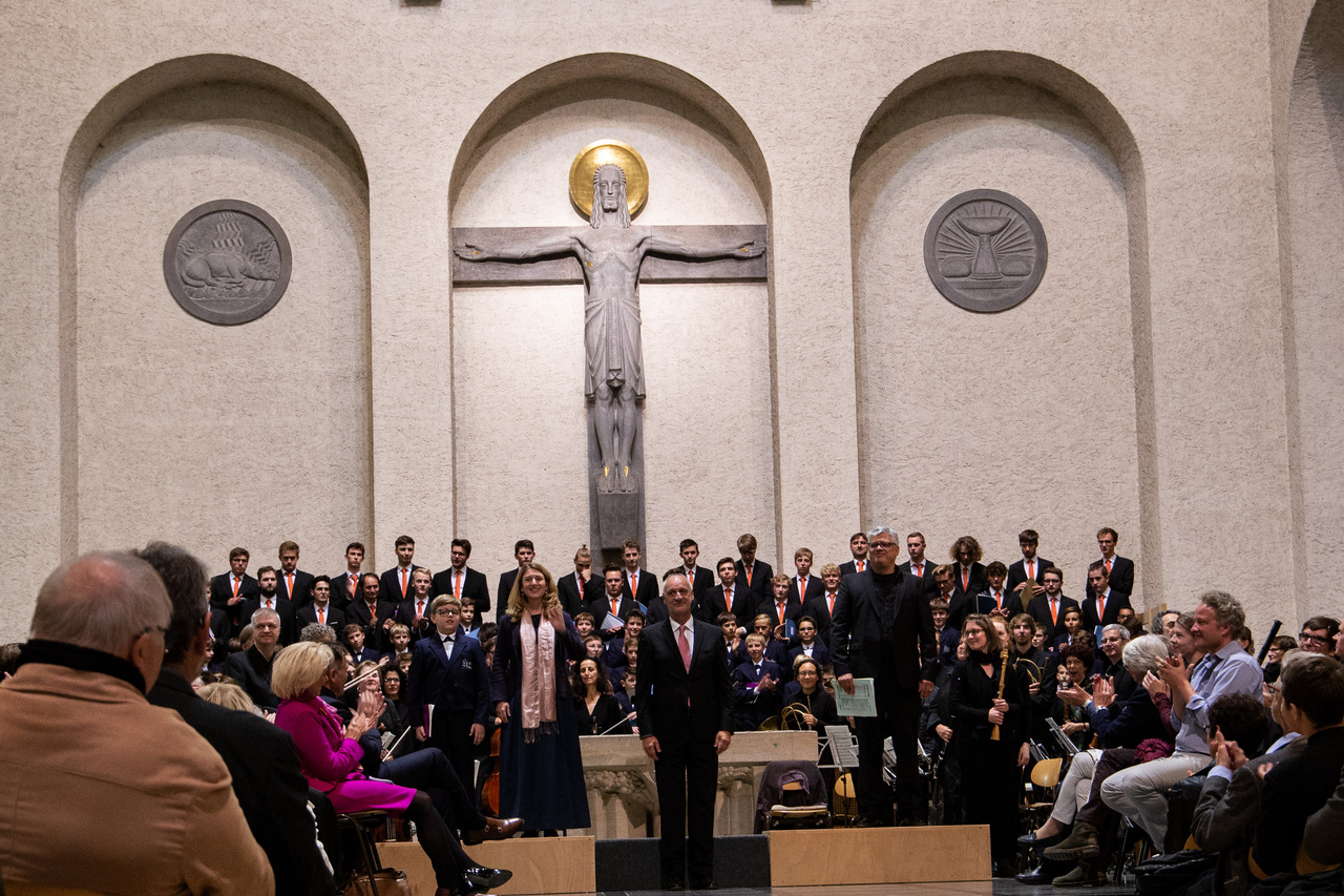 Das traditionelle Abteikonzert am Tag der Deutschen Einheit hat auch in diesem Jahr das Publikum in der ausverkauften Kirche der Abtei Münsterschwarzach begeistert. Die Regensburger Domspatzen und Concerto Köln unter der Leitung von Domkapellmeister Roland Büchner gaben Werke von Felix Mendelssohn Bartholdy. Den Auftakt machte der älteste Knabenchor der Welt mit dem A-Cappella-Stück „Jauchzet dem Herrn alle Welt“.