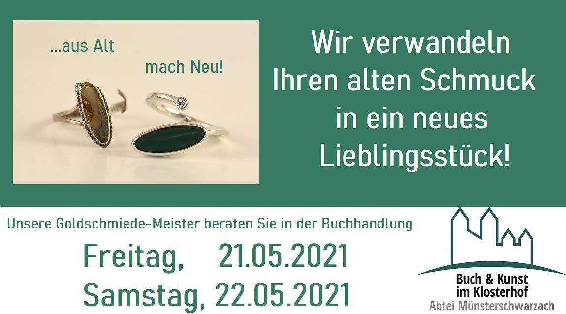 Am Freitag, 21.05.2021 und am Samstag, 22.05.2021 sind die Goldschmiede-Meister Sabine Bechtel und Steffen Dülk bei uns in der Buchhandlung und beraten Sie gerne.