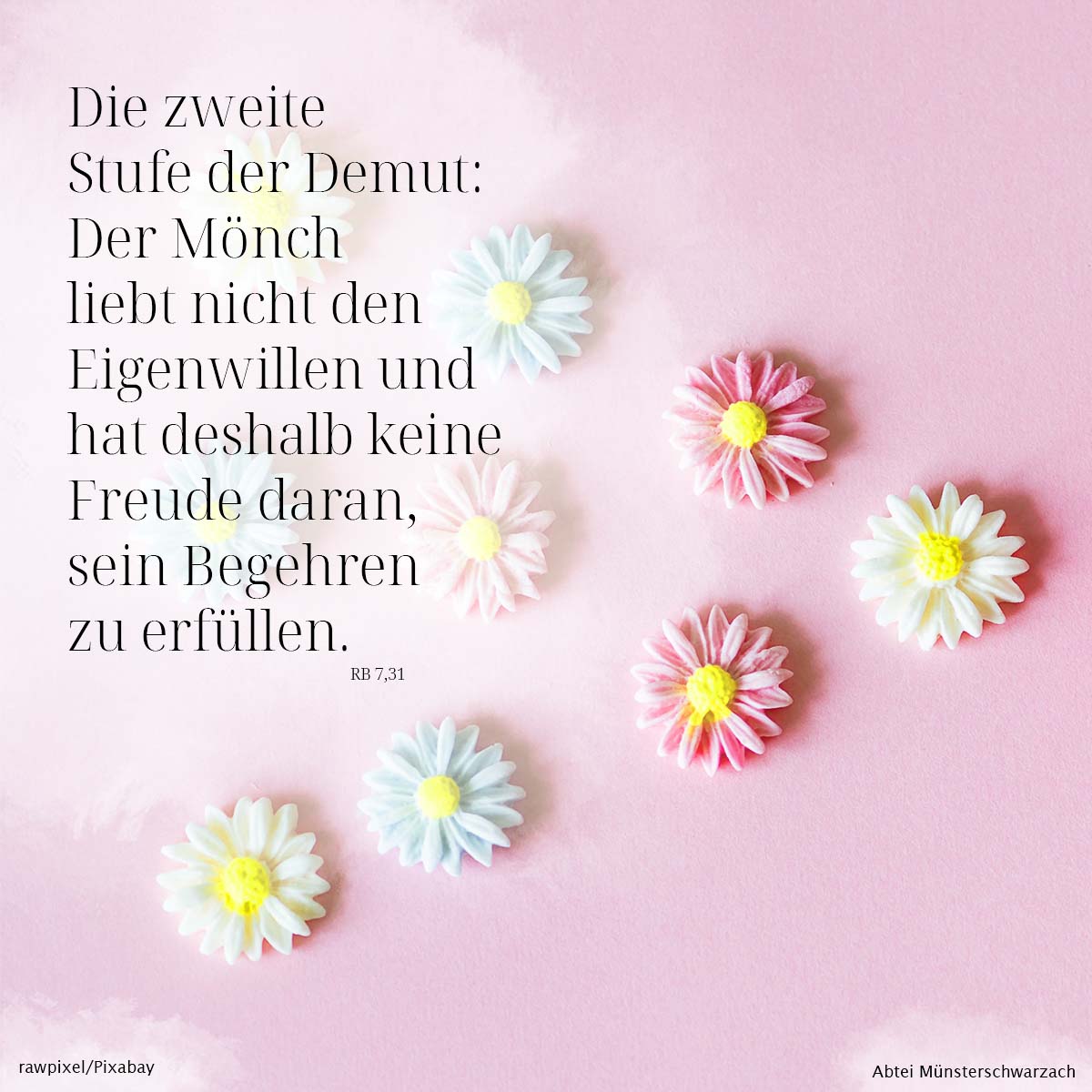 31. Die zweite Stufe der Demut: Der Mönch liebt nicht den Eigenwillen und hat deshalb keine Freude daran, sein Begehren zu erfüllen.