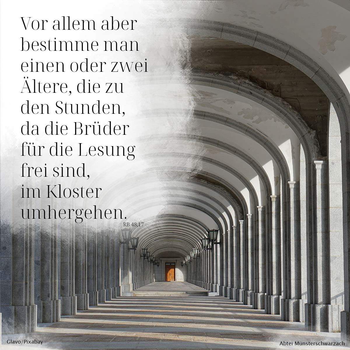 17. Vor allem bestimme man einen oder zwei Ältere, die zu den Stunden, da die Brüder für die Lesung frei sind, im Kloster umhergehen.