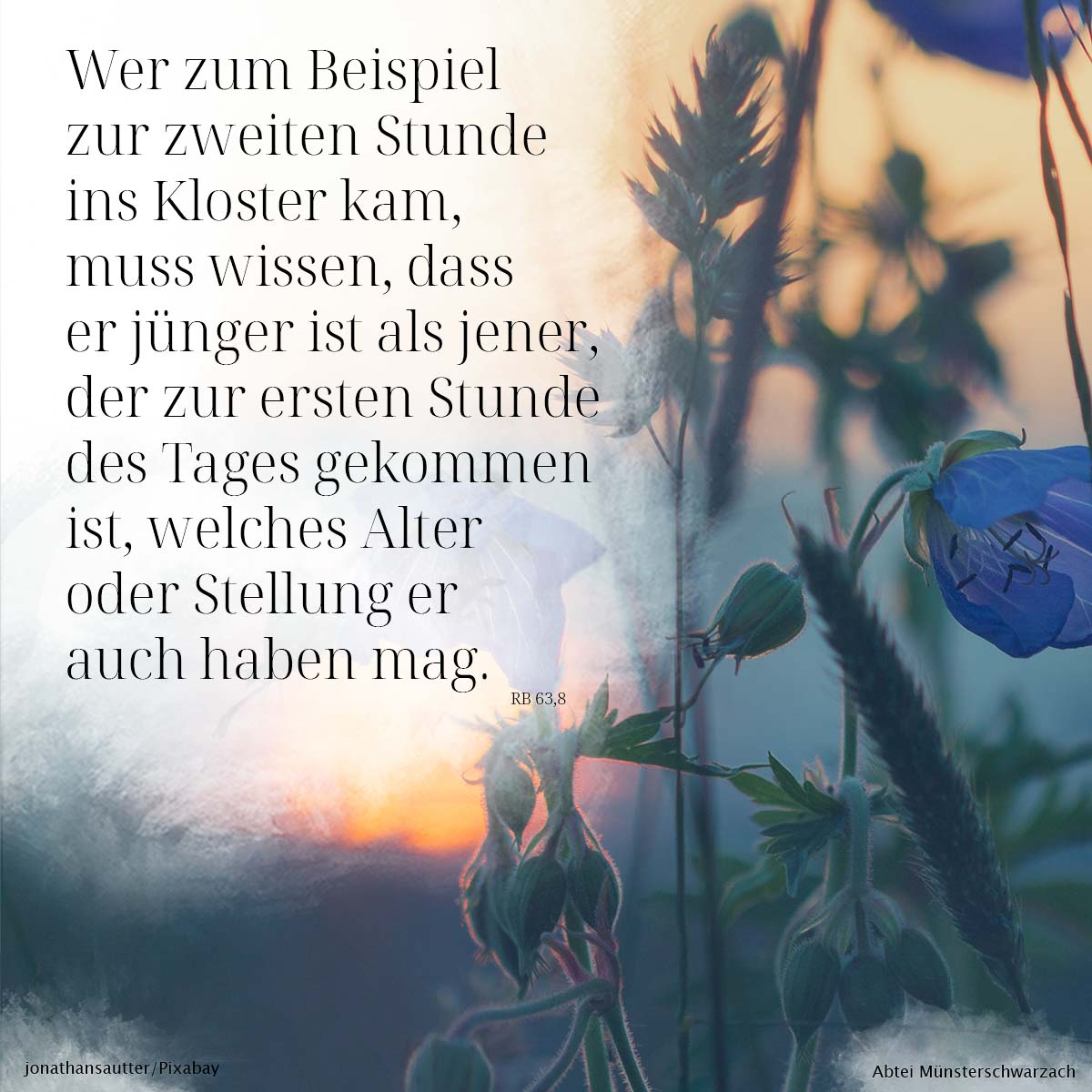 8. Wer zum Beispiel zur zweiten Stunde ins Kloster kam, muss wissen, dass er jünger ist als jener, der zur ersten Stunde des Tages gekommen ist, welches Alter oder Stellung er auch haben mag.