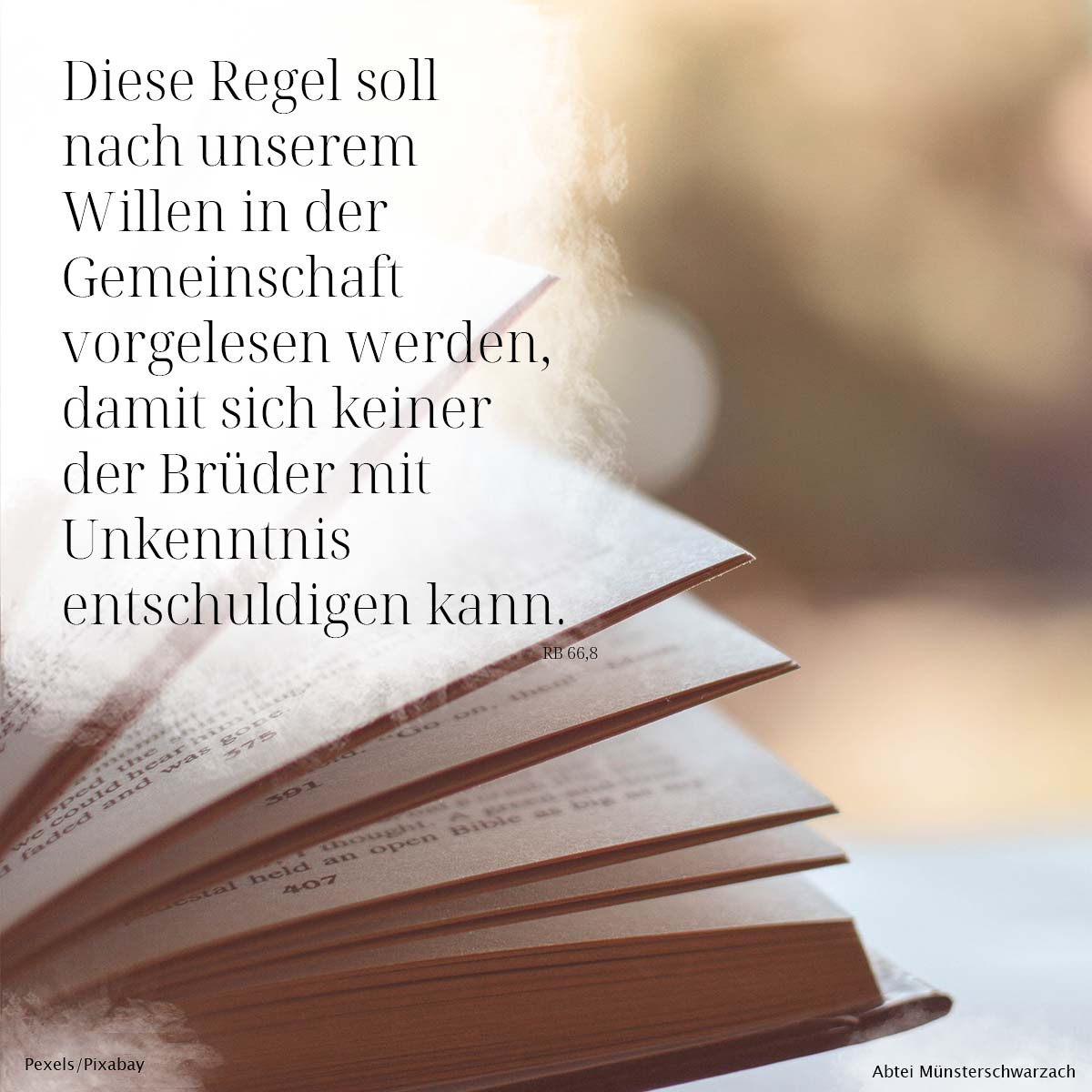 8. Diese Regel soll nach unserem Willen in der Gemeinschaft oft vorgelesen werden, damit sich keiner der Brüder mit Unkenntnis entschuldigen kann.