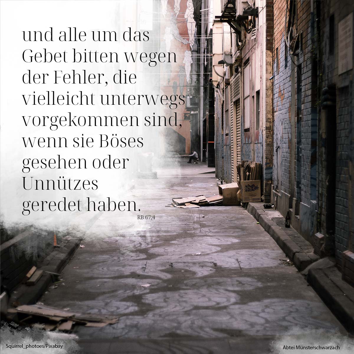 4. und alle um das Gebet bitten wegen der Fehler, die vielleicht unterwegs vorgekommen sind, wenn sie Böses gesehen und gehört oder Unnützes geredet haben.