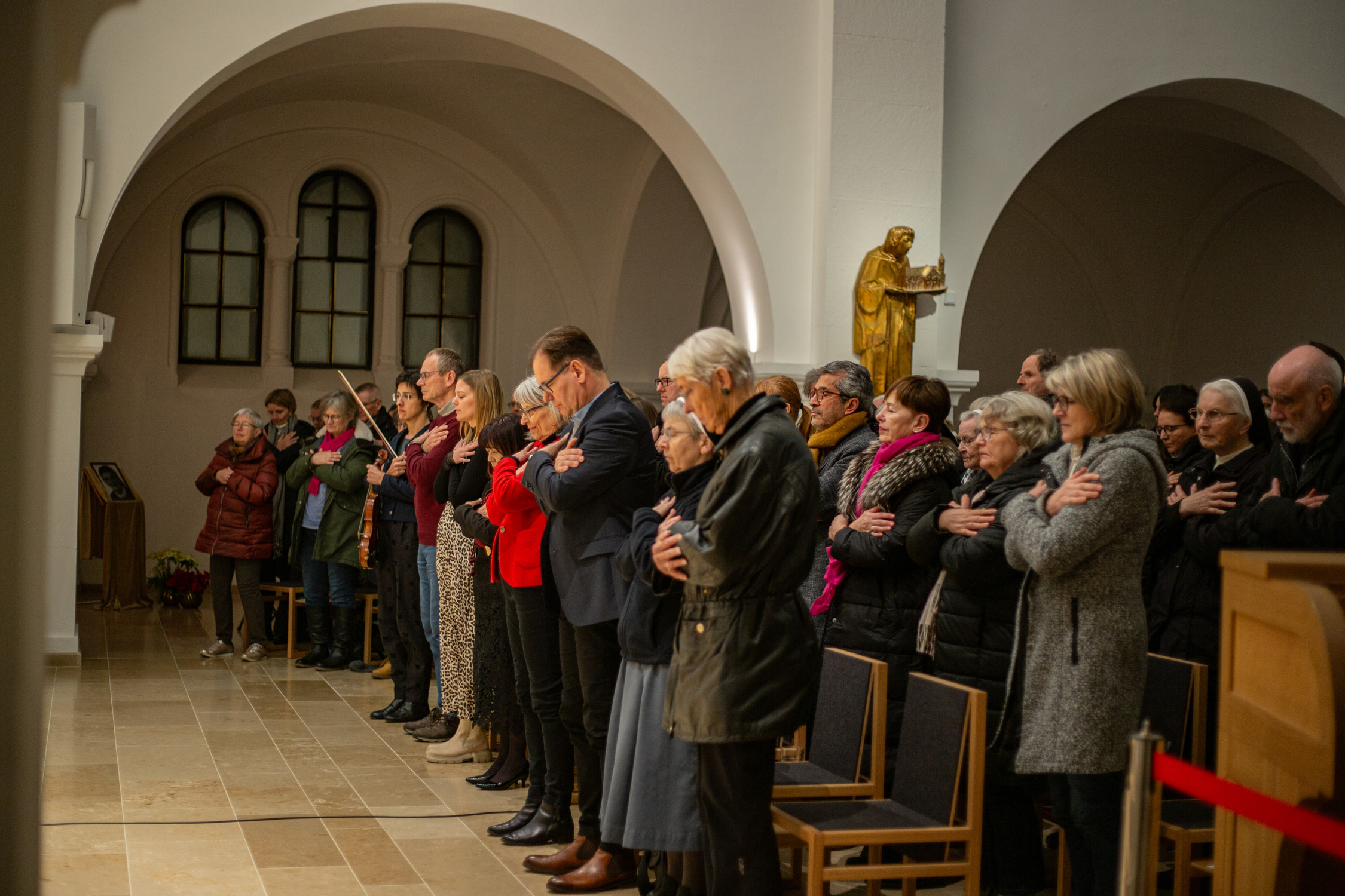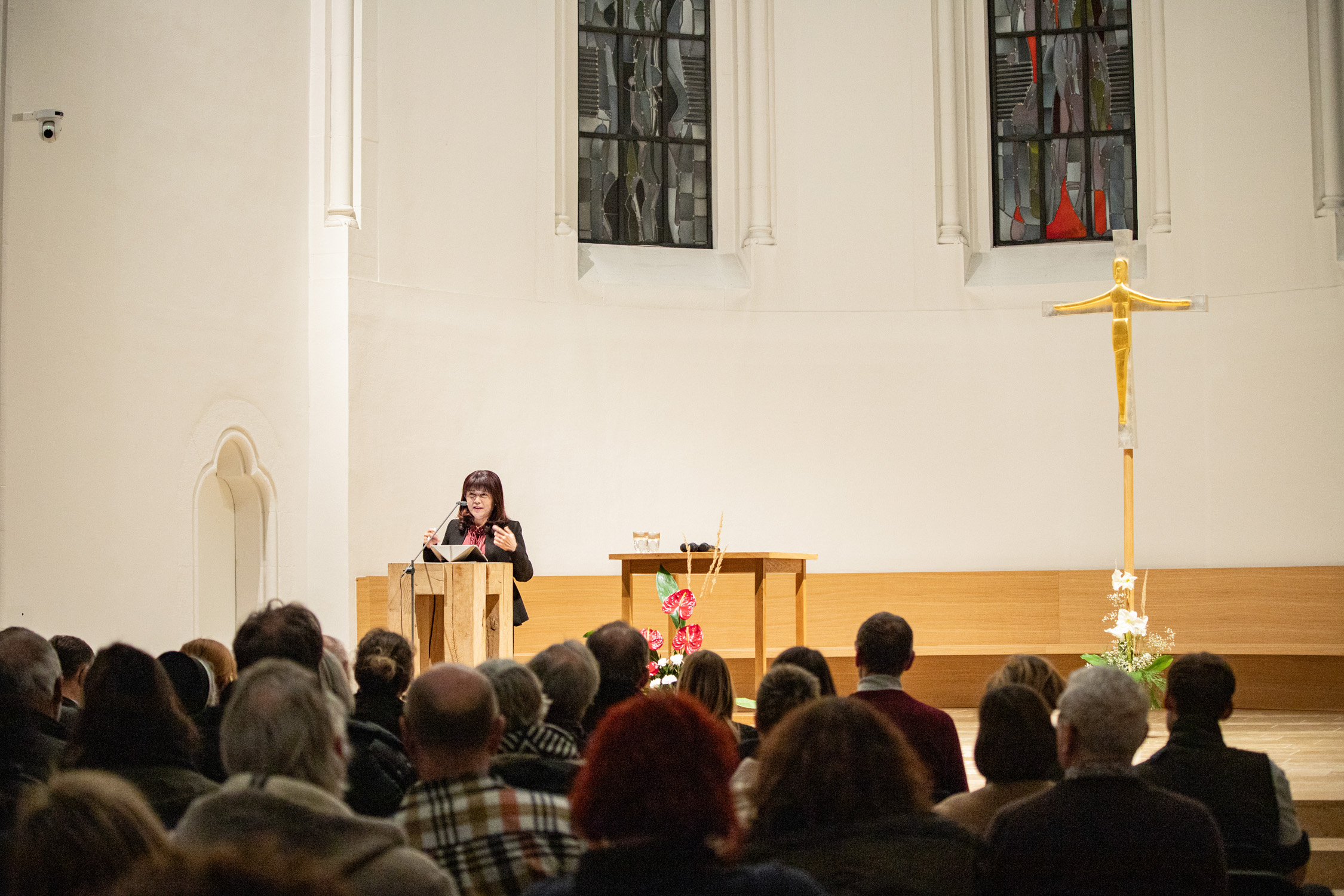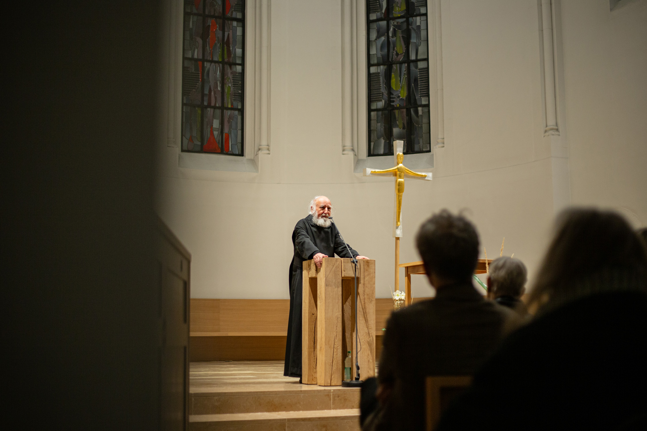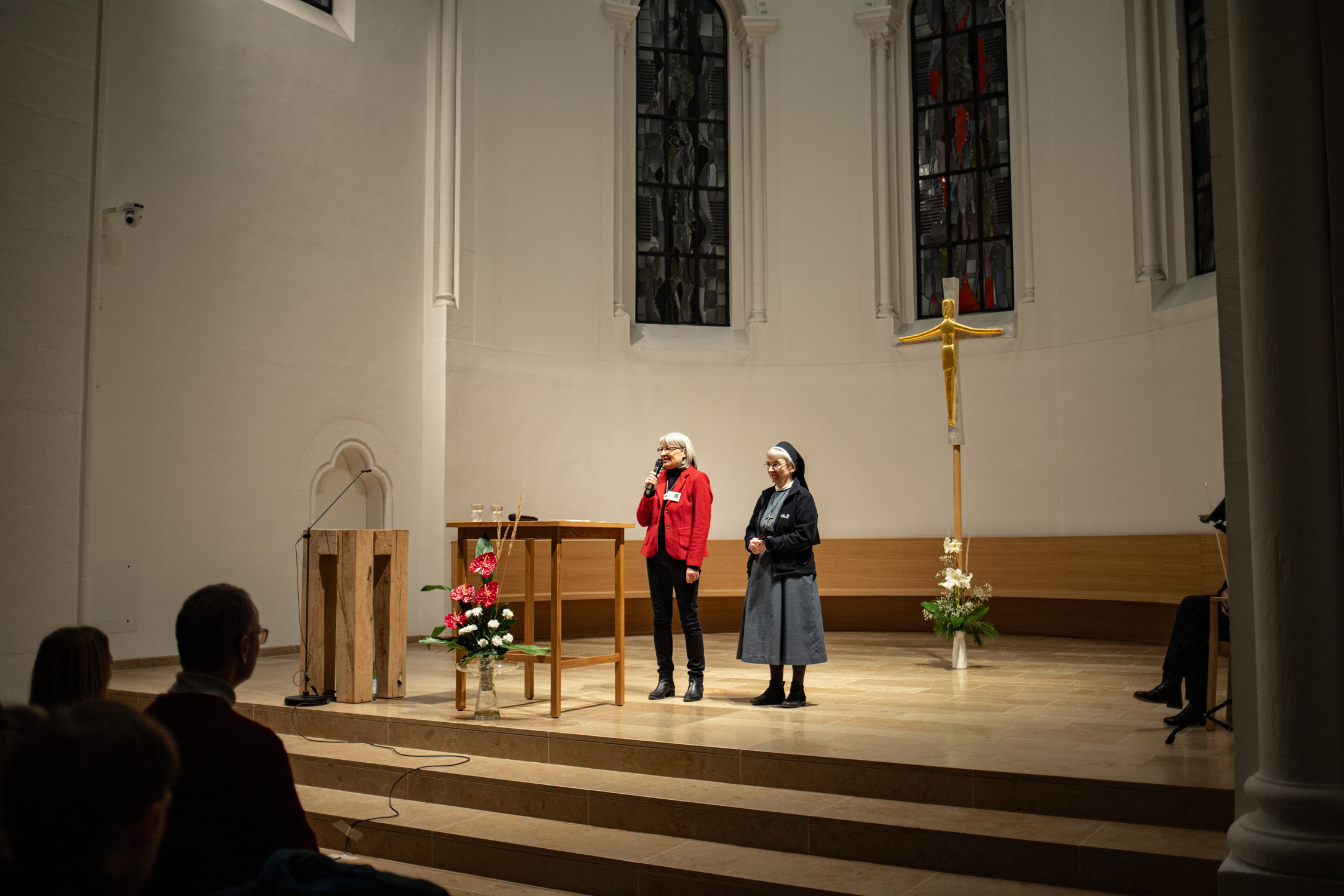 Es hat schon Tradition, dass P. Anselm Grün seine neuen Bücher in der Kirche der Erlöserschwestern in Würzburg präsentiert. Die vom Team Benedikt organisierten Veranstaltungen sind dabei, wie auch am Dienstagabend, immer bis auf den letzten Platz besetzt. Dieses Mal kam mit Co-Autorin Hsin-Ju Wu noch ein besonderer Gast dazu. Unter dem Titel „Wer bin ich? Selbstwerdung statt Selbstoptimierung“ veröffentlichte die Verlagsleiterin aus Taiwan gemeinsam mit P. Anselm bereits das 4. Buch im klostereigenen Vier-Türme-Verlag. Musikalisch wurde der Vortrag von Almut Frenzel-Riehl gestaltet.