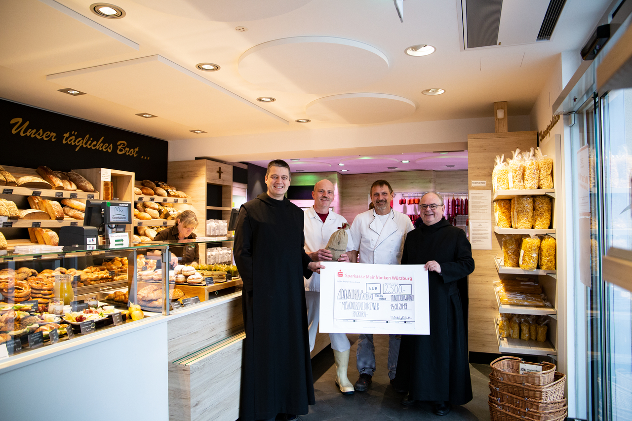 Im Rahmen der jährlichen Weihnachtsaktion haben die Bäckerei und Metzgerei der Abtei Münsterschwarzach 2.500 Euro an den „Orphan-Club“ in Tororo/Uganda gespendet. Durch den Verzicht auf Kundengeschenke vor Weihnachten konnten Bäckerei und Metzgerei 2.500 Euro einsparen, die nun dem Förderprogramm für Aidswaisen zugute kommen.