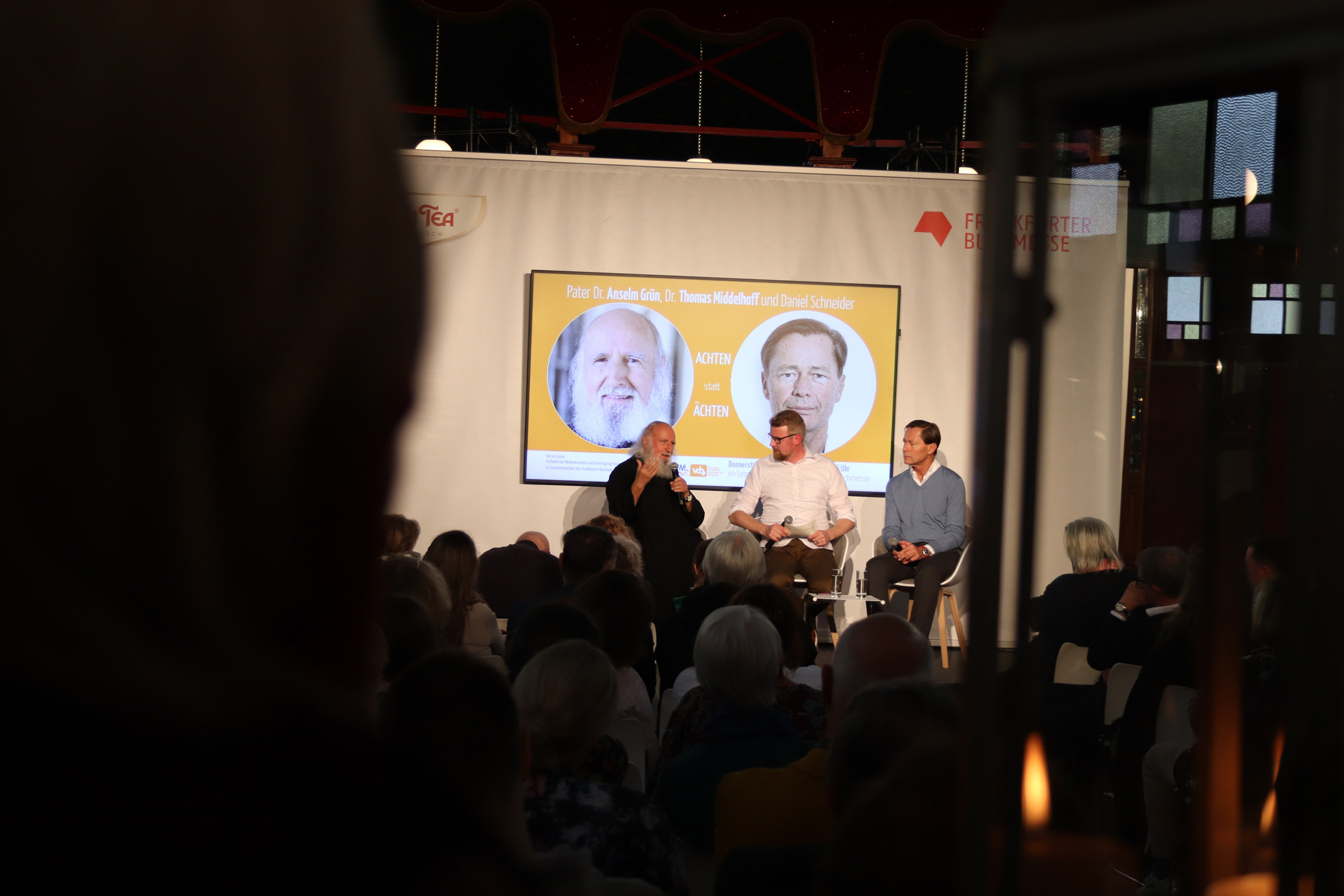Die Abendveranstaltung in der Abteikirche Münsterschwarzach ist öffentlich - hier ergeht herzliche Einladung. Gemeinsam mit der Band Sternallee sowie Clemens Bittlinger und Johannes Matthias Roth gibt P. Anselm eine Konzertlesung. Es beginnt um 19.30 Uhr, der Eintritt ist frei.