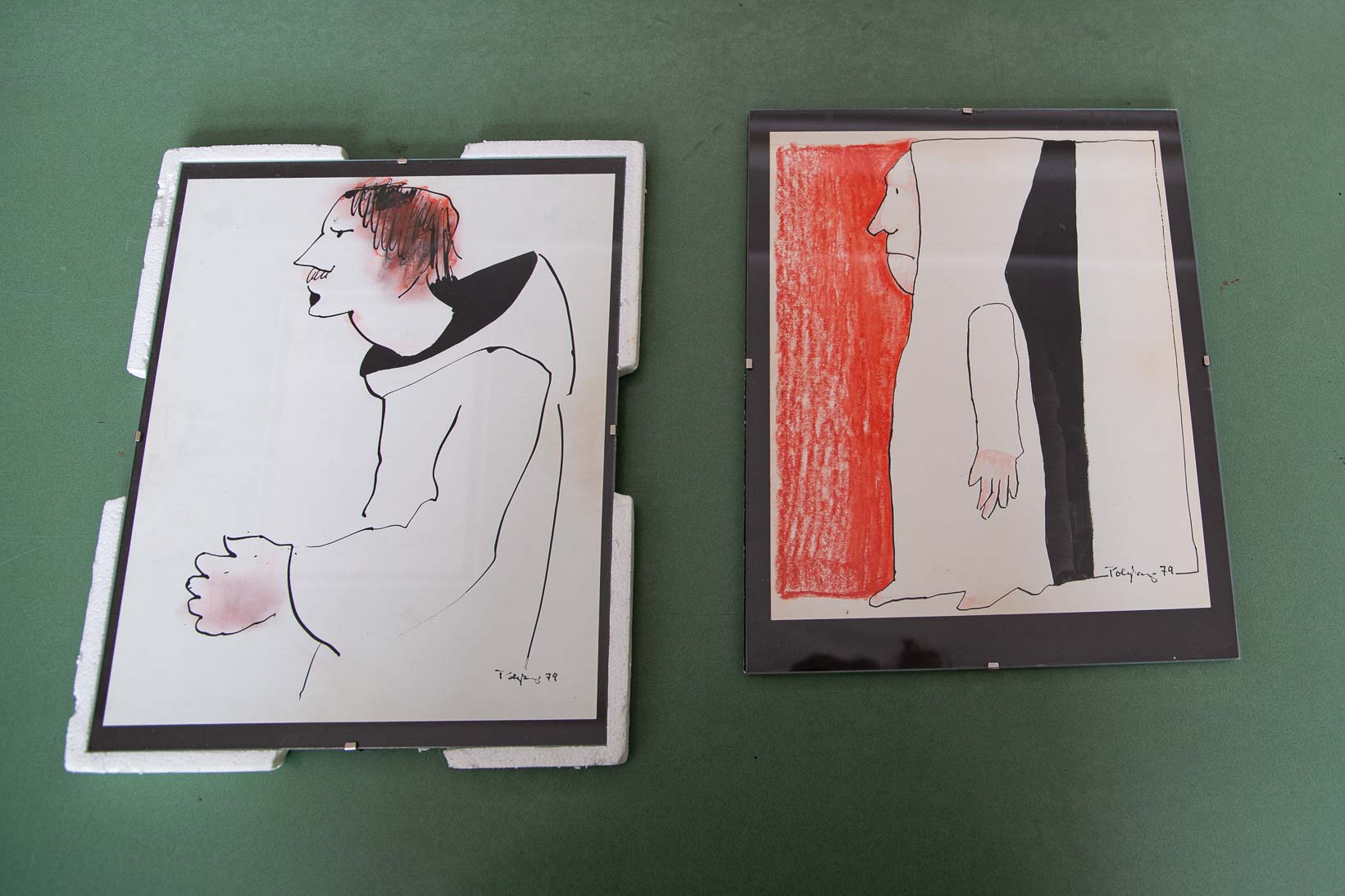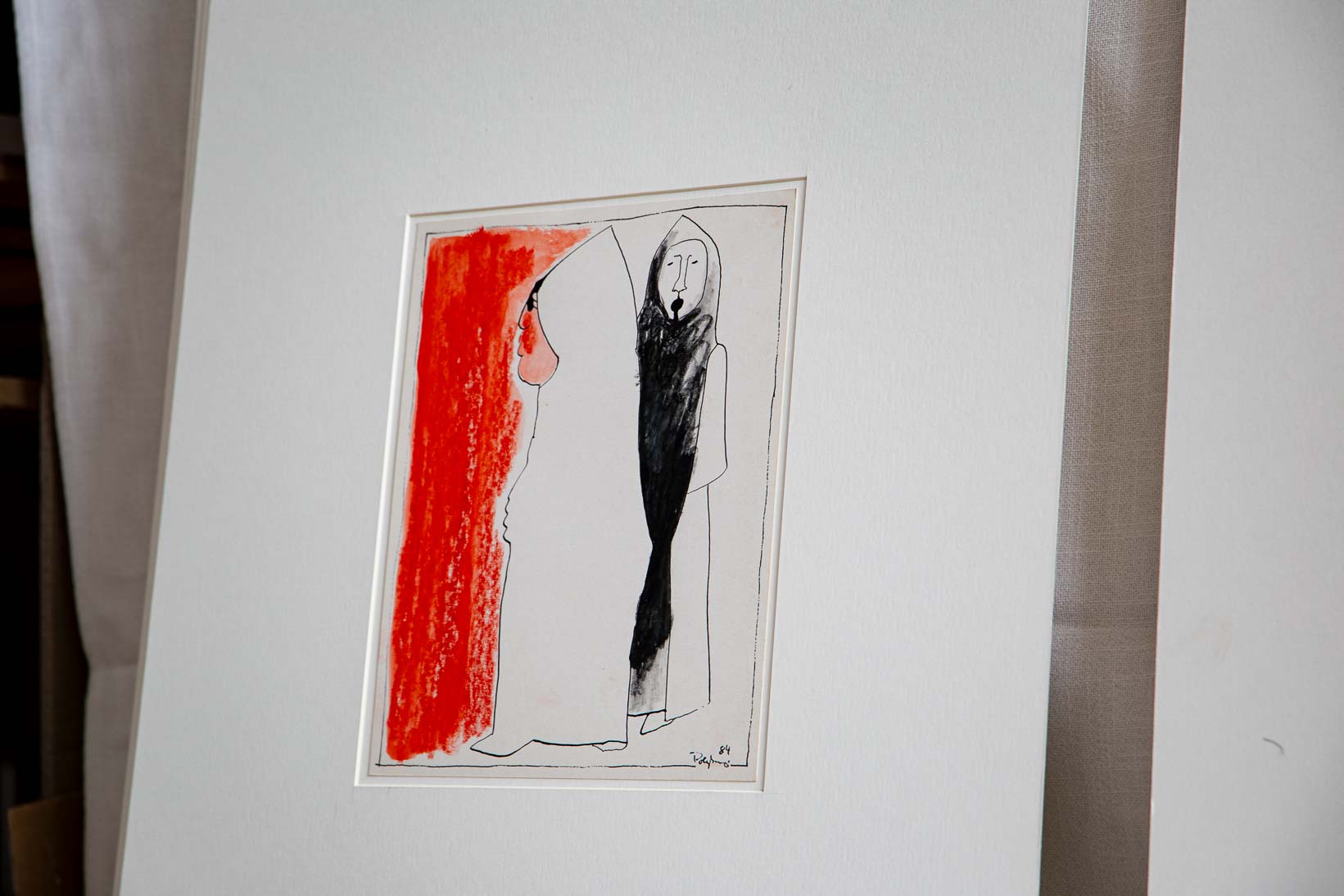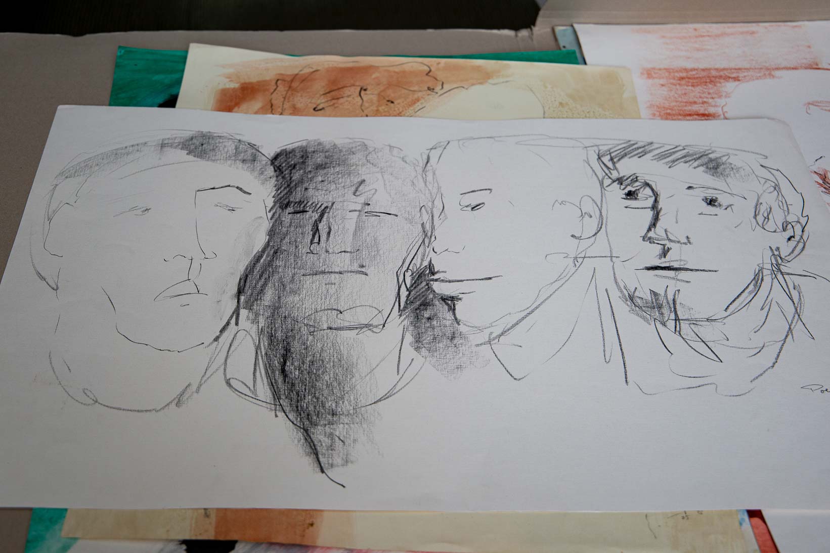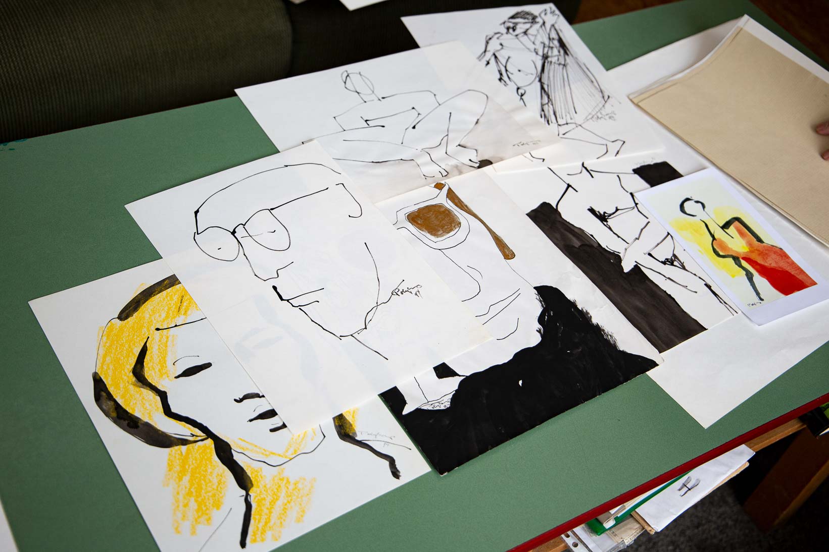 Was da aber die immer noch flinke Hand, leicht und tänzerisch dem Papier übergibt, strotzt von Witz, Phantasie und spielerischer Schaffenskraft. Von Paul Klee wird bemerkt: „Kunst gibt nicht Sichtbares wieder, sondern macht sichtbar“. Das geschieht auf den Blättern am kleinen Tisch neben dem Bett. Polykarp zeigt Menschliches in seinen Bildern, die schmunzeln lassen. Es sind Köpfe und Gestalten, die in Höhen und Tiefen ihre Seelenlandschaften zeigen. Der Künstler scheint mit den zahllosen Menschen seiner Lebenserfahrung zu sprechen. Es mögen auch Figuren, die aus dem viel Gelesenem auftauchen, ans Licht kommen. Und es sind der Musik entsprungene Gefühle und Gebärden, die Polykarp irgendwann eingelassen hat. Dass ein 90jähriger derart heiter, geradezu „leichtfüßig“ Bilder malt, ist eine große Aussage über sein Leben.