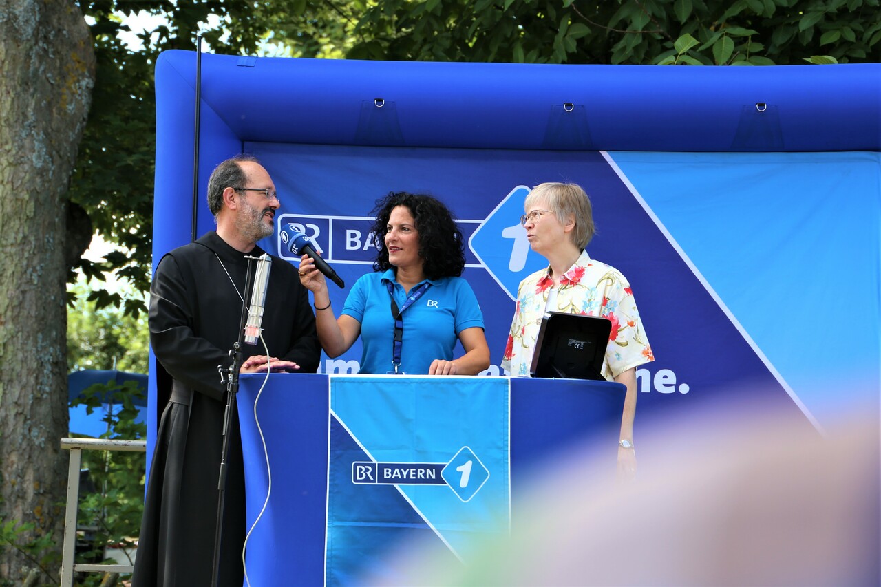 Die BR-Mainfrankentour hat am Mittwoch auf dem Schwanberg Station gemacht. Gemeinsam mit der neuen Priorin der dortigen Communität Casteller Ring war Abt Michael Reepen OSB auf der Bühne - und sorgte als es um die WM ging für einige Lacher.