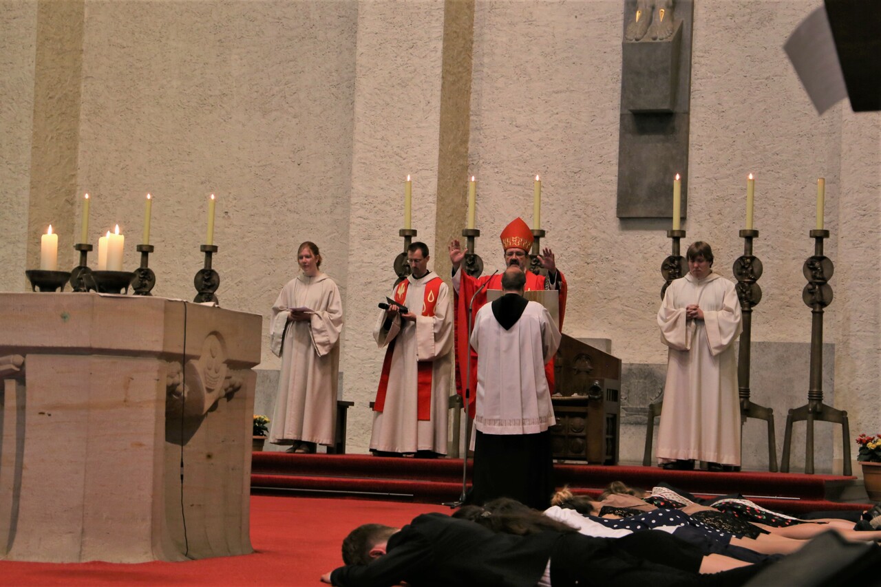 Im Leben können laut Abt Michael aber immer wieder Zweifel, auch am Glauben, aufkommen. Sogar einer der Apostel hätte sie gehabt. Das Matthäusevangelium, in dem Petrus im Sturm Angst hatte und im Wasser zu versinken drohte, zeige dies. Die Firmung wolle den Jugendlichen Mut machen, auf Gott zu vertrauen. Ein besonderes Ritual in der Abtei ist das Niederwerfen in die sogenannte Prostratio-Haltung vor der Salbung mit Chrisamöl. Damit zeigten die Firmlinge, dass sie sich ganz Gott in die Hände legen würden, so der Abt weiter. Bei der Handauflegung werde der Geist Gottes durch jeden einzelnen von ihnen strömen.