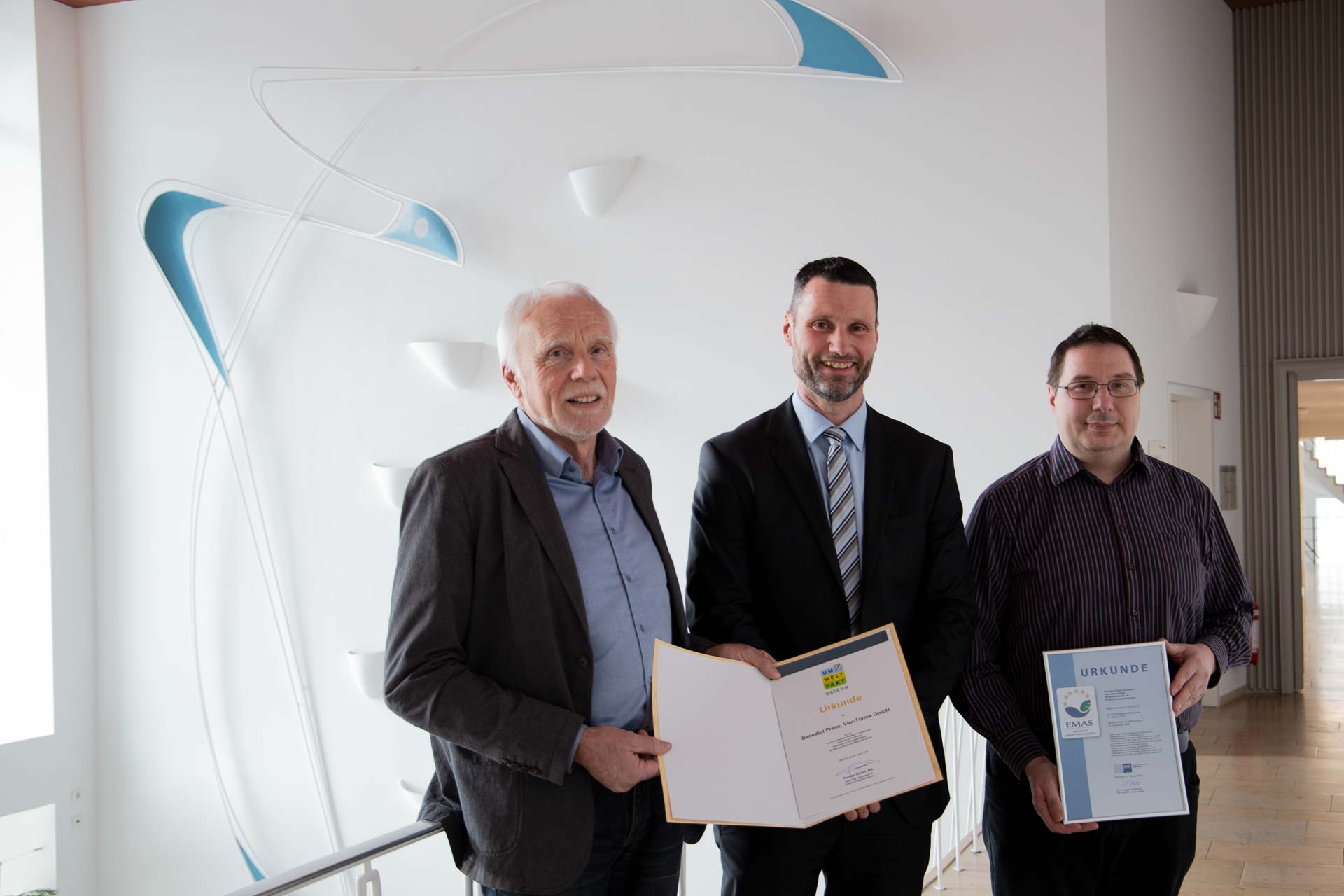 Anfang 2019 hat die Druckerei das EMAS-Zertifikat erhalten und wurde 2021 für weitere zwei Jahre rezertifiziert. Das international anspruchsvollste System EMAS steht für nachhaltiges Umweltmanagement. Dem Zertifikat ging ein mehrmonatiger Prozess voraus, bei dem unter anderem Wasserverbrauch, Müllaufkommen, Gefahrstoffe, Stromverbrauch sowie die Arbeitssicherheit in der Druckerei von internen und externen Gremien des Förderkreises Umweltschutz Unterfranken (FUU) geprüft wurden.