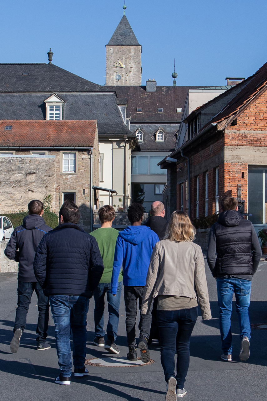 Sechs Auszubildende der Klosterbetriebe haben beim Azubitag am Dienstag die Abtei Münsterschwarzach besser kennen gelernt. P. Maximilian Grund OSB, der für sie überbetrieblich verantwortlich ist, erzählte bei einer Abteiführung die Geschichte der Benediktiner in Münsterschwarzach. Ihren Ausbildungsbetrieb stellten die Azubis dann selbst vor. Diese sind seit Anfang September in Metzgerei, Küche, Elektrowerkstatt, Goldschmiede, Druckerei und in Form eines dualen Studiums in der Landwirtschaft beschäftigt.
