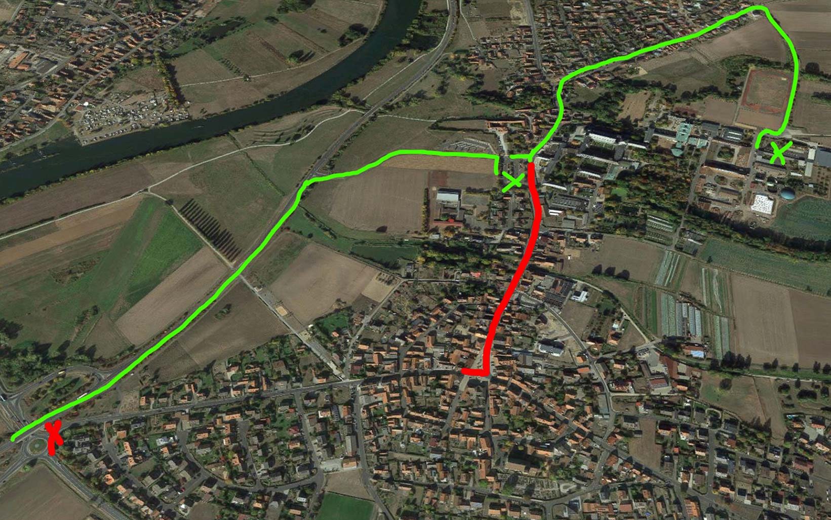 Fair-Handel und Vier-Türme-Verlag sowie alle anderen Betriebe auf dem Abteigelände können über die Sonnenstraße durch Gerlachshausen angefahren werden. Die Karte zeigt rot die gesperrten Wege, in grün die Umleitungen.