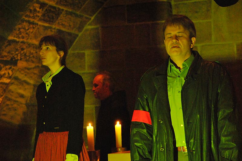 Michael Aust inszenierte das Stück und leitete das Projekt. Der Erlös kommt der Flüchtlingsarbeit der Abtei zugute.