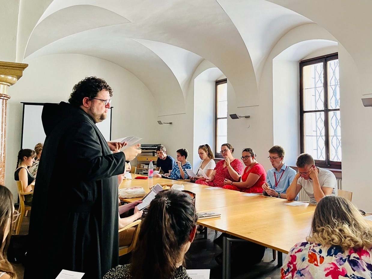 Neben den klassischen Vortrags- und Diskussionsformaten hat sich bei den "Salzburger Hochschulwochen" seit vier Jahren ein neues Format etabliert, das sich immer größerer Beliebtheit unter den Teilnehmerinnen und Teilnehmern erfreut: "Benedictine Banter": Zwei junge Ordensleute - P. Jakob Auer von der Erzabtei St. Peter und Br. Wolfgang Sigler von der Abtei Münsterschwarzach - luden während der Hochschulwoche (1. bis 7. August) drei Mal zu Gesprächen und exklusiven Führungen für Studierende durch bzw. in die Erzabtei St. Peter. Orientiert am jeweiligen Thema der Hochschulwoche - heuer "Wie geht es weiter? Zur Zukunft der Wissensgesellschaft" - boten sie dabei "Schaufenster monastischen Lebens" und stießen auf reges Interesse, wie sie abschließend positiv bilanzierten.