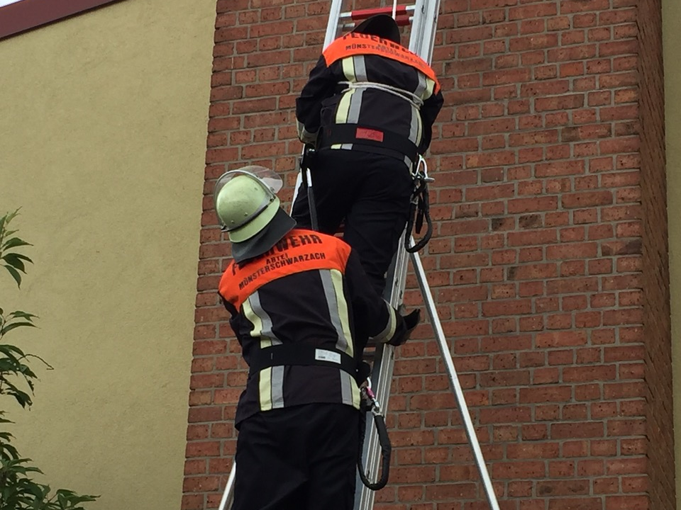 Zwei Löschgruppen der Freiwilligen Feuerwehr Stadtschwarzach und der Abtei Münsterschwarzach trafen sich am 15. Juli zu einer gemeinsamen Übung. Dabei standen Leitern und ihre Bedienung im Mittelpunkt.