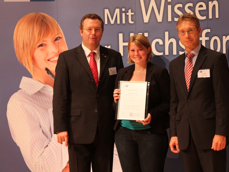 Die ehemalige Auszubildende Veronika Rötting wurde von der IHK Würzburg-Schweinfurt als Kammersiegerin im Berufsbild Buchhändlerin ausgezeichnet. Sie nahm die Ehrung zusammen mit ihrer Ausbilderin Nadine Weber bei einer Feierstunde in Bad Kissingen entgegen.