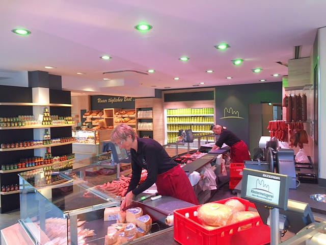 Sechs Monate hat der Umbau gedauert – doch jetzt strahlen Kunden und Mitarbeiter gleichermaßen. Denn in dem neuen schicken Laden von Klosterbäckerei und Klostermetzgerei fühlen sich alle wohl. Das Bild bestimmen helle, freundliche Räume, übersichtliche Ladentheken und Sitzecken für die Besucher, an denen sie in Ruhe Kaffee und Kuchen oder eine herzhafte Brotzeit genießen können. Dazu gibt es ganz neue Angebote wie die heiße Theke in der Metzgerei oder in der Bäckerei das Klostereis.