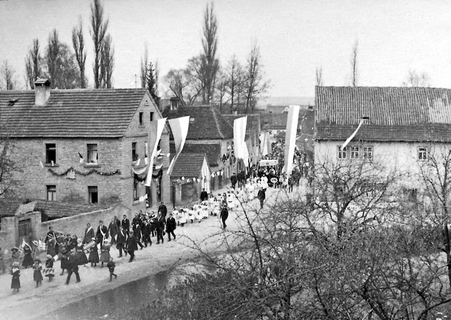 "Ein braver Bürger namens Kuhn, von dem wir jetzt unsere Bausteine beziehen, stellt uns einen Kiesacker am Main gratis zur Verfügung. Schottersteine schenkt uns der andere Kuhn aus Gerlachshausen", heißt es in den Annalen vom Februar 1914.