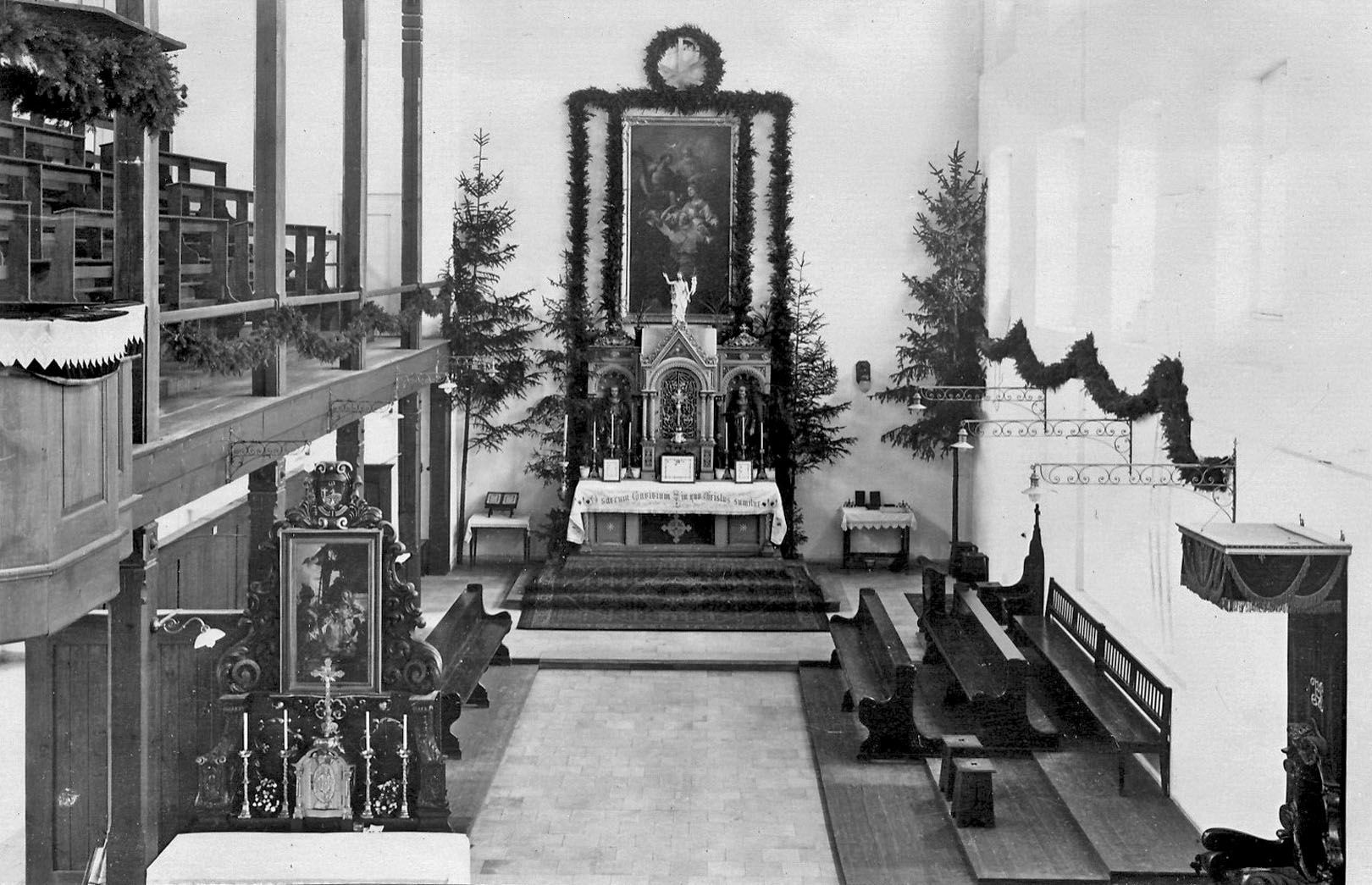 "Alles ist in brüderlicher Liebe um den Christbaum versammelt: Patres, Fratres, Brüder, Knechte und Franzosen. P. Prior Basilius hält eine deutsche Ansprache, Fr. Heinrich eine französische. Weihnachtslieder werden gesungen. Unser französischer Schmied, ein guter Sänger, entschuldigt sich, dass er keine religiösen Lieder könne und gibt ein paar weltliche Lieder zum besten." (aus den Annalen)