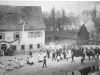 Trotz des laufenden Krieges ging der Wiederaufbau in der Abtei Münsterschwarzach mit wenigen, aber vereinten Kräften weiter. Nicht unerwähnt bleiben darf, dass zu dieser Zeit auch Kriegsgefangene beim Aufbau und vor allem der Ernte mithalfen. Viele Aufzeichnungen zeigen aber, dass bald eine Verbrüderung stattfand. Man aß gemeinsam, betete, feierte sogar Weihnachten (Bild 3 zeigt die Franzosen):