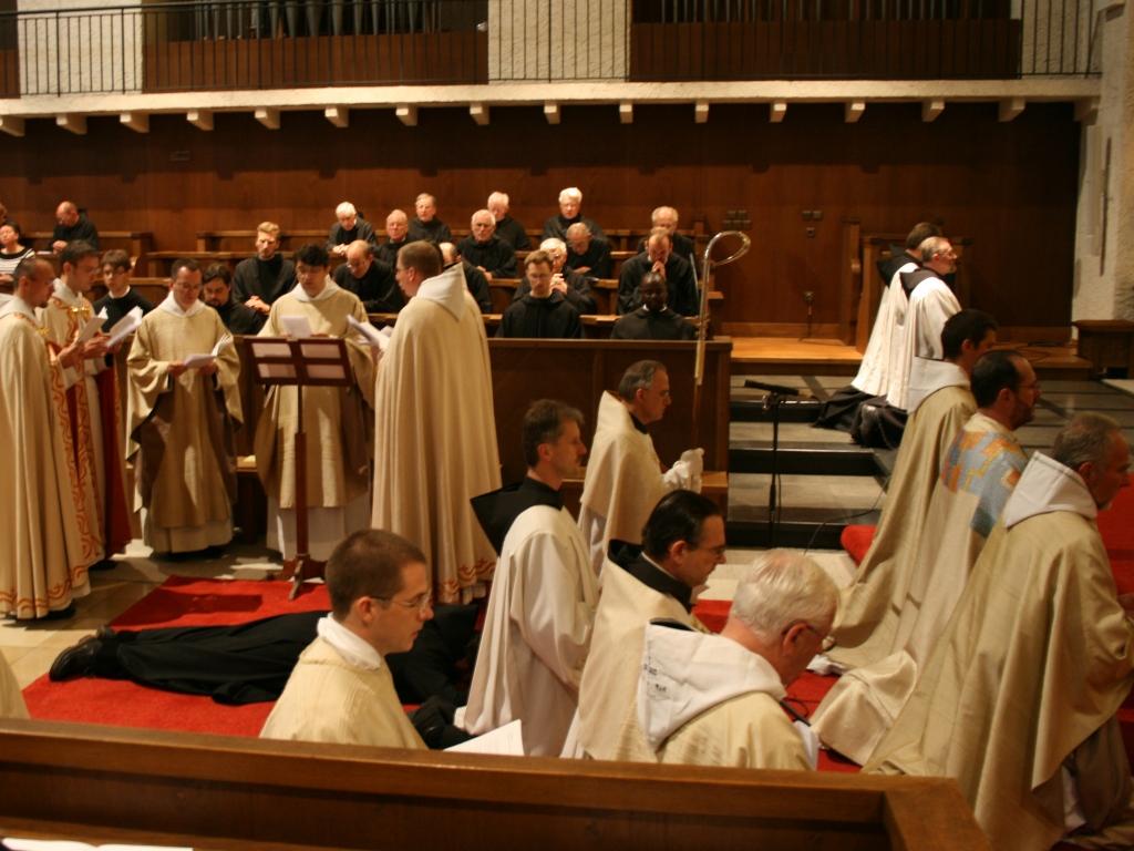 Zu Beginn begrüßte Abt Michael die zahlreich erschienenen Gläubigen, die Mitbrüder, die Verwandten und Freunde des Neuprofessen. Er freue sich, dass Bruder Zacharias nach reiflicher Überlegung sich zu diesem Schritt entschlossen habe und sich für immer der Abtei anschließen und sich deren Aufgaben zur Verfügung stellen möchte. Abt Michael sagte, das Fest Aufnahme Mariens in den Himmel passe gut zum Professtag. Maria wurde in den Himmel aufgenommen - auch das Ziel des Ordensleben ist der Weg zu Gott.