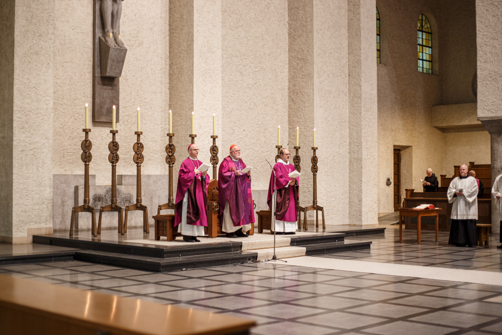 Besonderer Höhepunkt für den Mönchskonvent war die gemeinsame Vesper mit Amt am Mittwochabend. Im Anschluss waren die Gäste zu einem gemeinsamen Abendessen in das Refektorium eingeladen, an das sich eine Begegnung mit den Mönchen anschloss. Aufgeteilt in die Dekanien, die Kleingruppen des Konvents, verbrachten die Bischöfe den Abend mit den Mönchen.
