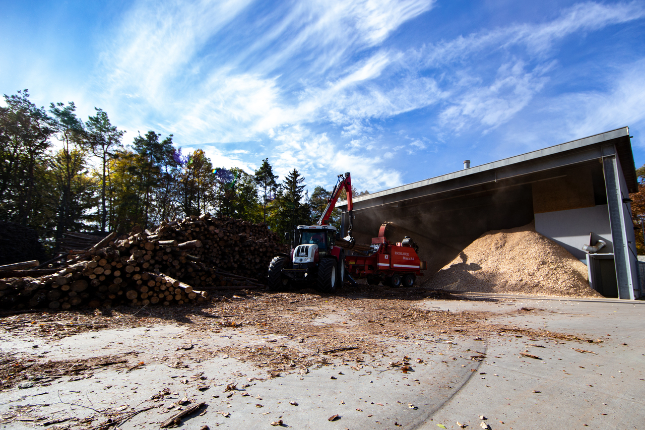 Wärme garantiert: Kurz vor dem Winter ist für Heizmaterial in der Abtei Münsterschwarzach gesorgt. Über 60 Tonnen Holz sind gehäckselt und werden in den kommenden Monaten dafür sorgen, dass die Biomasse-Heizung auch laufen kann. Über 85 Prozent des Wärmebedarfs in der Abtei kann seit September 2003 darüber gewonnen werden. Ausschließlich Brennholz aus dem umliegenden Steigerwald wird dafür eingesetzt.