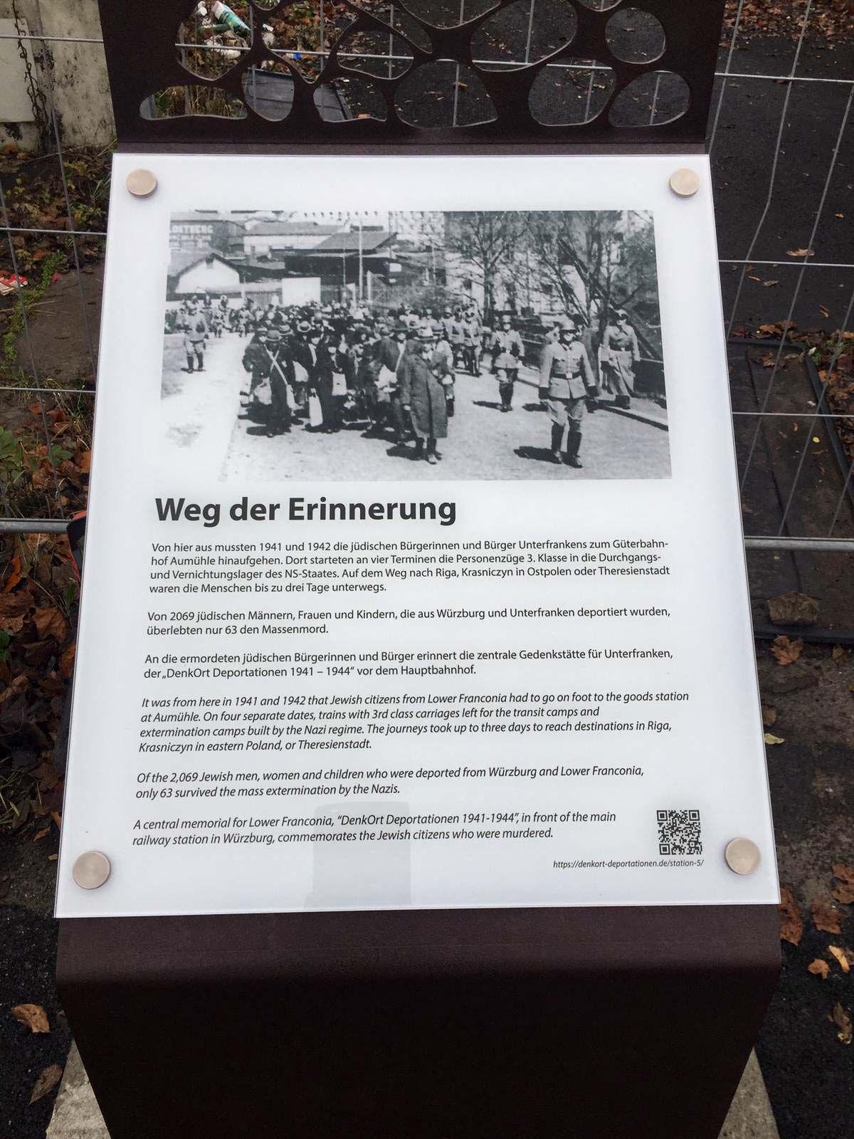 Der "Weg der Erinnerung" in Würzburg soll die die Deportationen der jüdischen Menschen erinnern. Nun wurde ein neuer Ort eingeweiht.