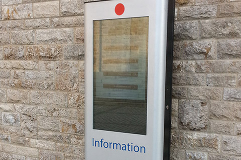 Wer erstmals unsere Abtei besucht, muss sich bei der Größe der Klosteranlage und Vielzahl der Gebäude erst einmal einen Überblick verschaffen. Direkt auf dem Kirchplatz vor dem Eingang der Klosterpforte befindet sich daher eine Informationssäule mit Touchscreen, die unseren Gästen Auskunft bietet.