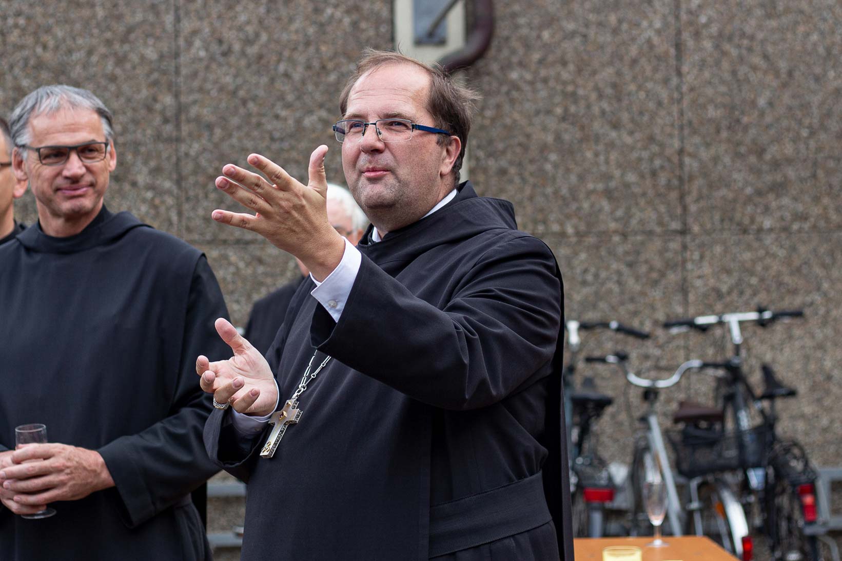 Anhand des Abteischlüssels erklärte Abt Michael symbolisch, was es heißt, Missionsbenediktiner zu sein. Dieser stehe als Symbol des Jubiläumsjahres unter dem Motto "be open" für die Offenheit, welche die Missionsbenediktiner ausmache. Als Begrüßungsgeschenk und Erinnerung erhielten die Mönche diesen Schlüssel als Kettenanhänger.