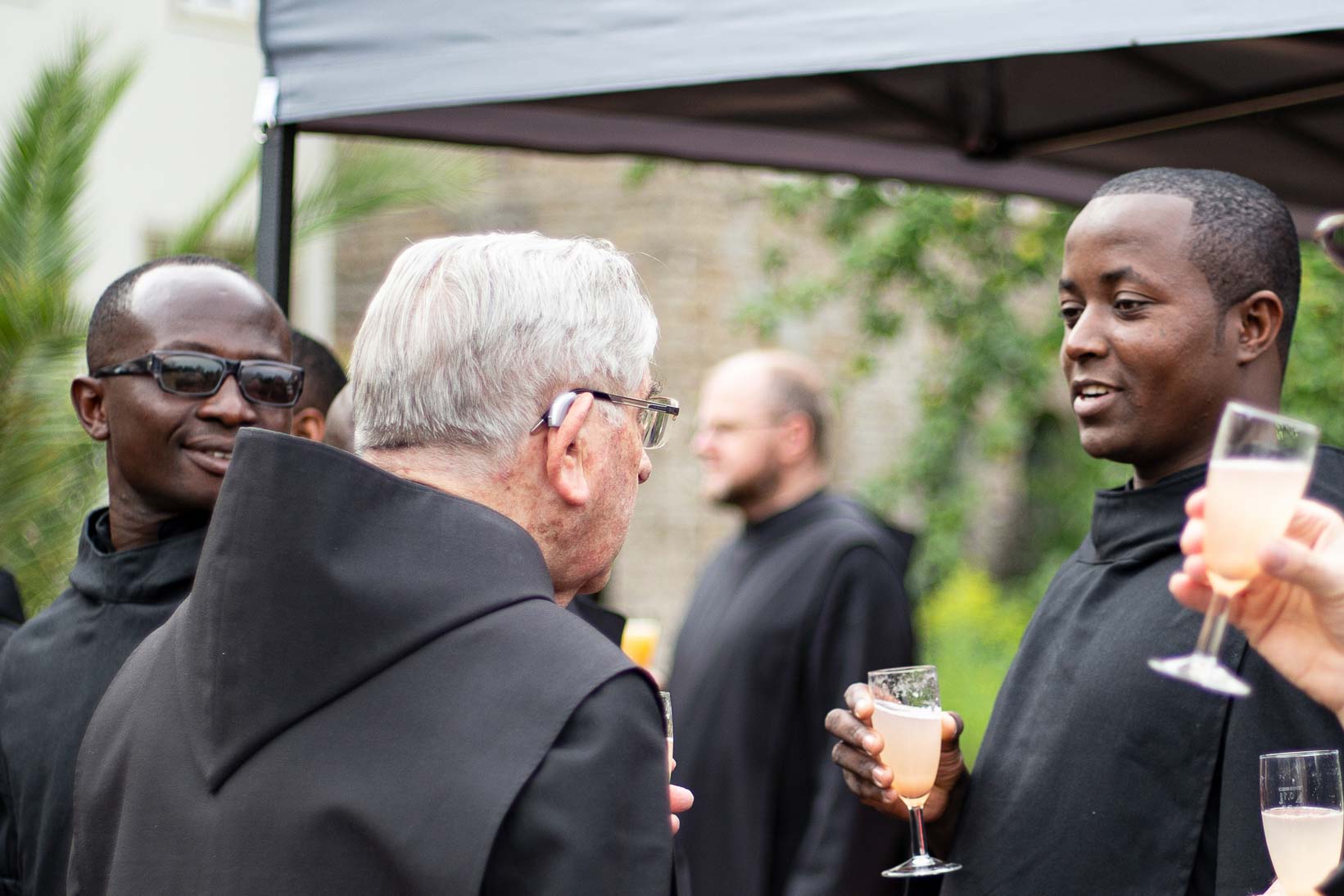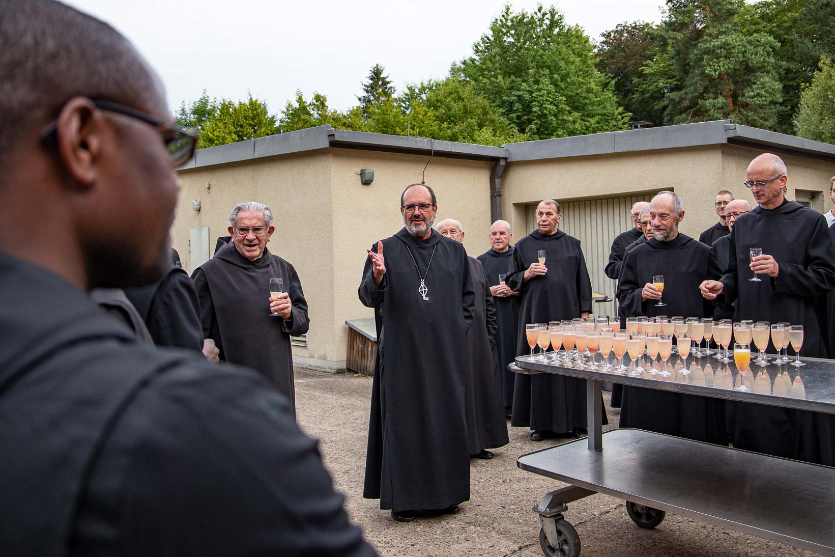 Der erste Programmpunkt am Montagabend war das gemeinsame Stundengebet. Im Anschluss wurde die zu diesem Zeitpunkt noch nicht vollständige Gruppe im Konvent empfangen. Gemeinsam mit Abtpräses Jeremias Schröder OSB, der Oberste der Kongregation der Missionsbenediktiner von St. Ottilien, der die Gruppe begleitet, hieß Abt Michael Reepen OSB sie herzlich in Münsterschwarzach willkommen.