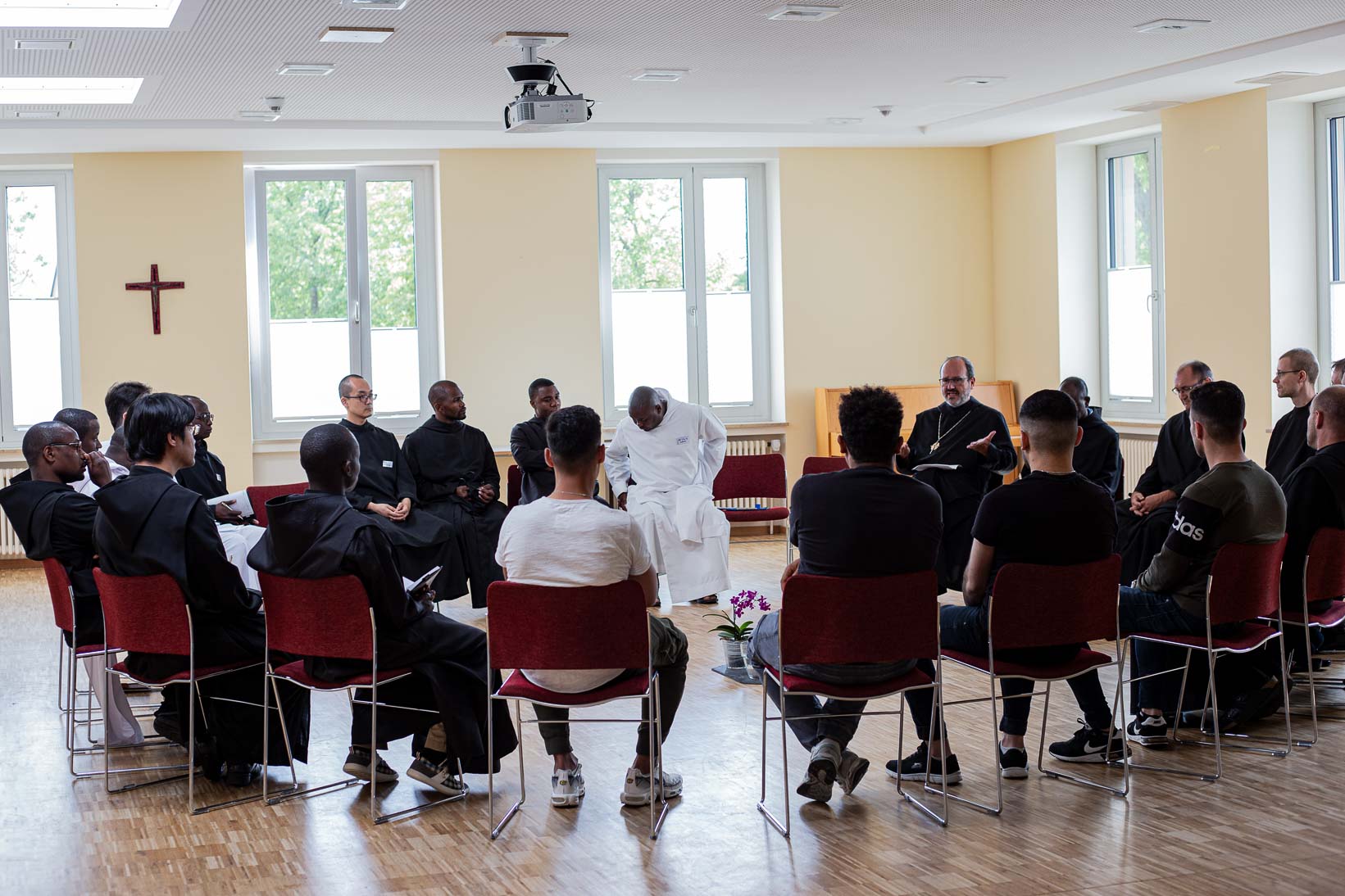 Herausforderungen für die Kirche in Deutschland. Kaum zu vergleichen mit Herausforderungen, mit denen sie in ihren Klöstern zu kämpfen haben. Von diesen berichten sie beim Gang über das Abteigelände. Gleichzeitig lernen die jungen Mönche die Aufgaben der Abtei in der Schule, im Recollectio-Haus und die Investitionen in die Regenerativen Energien.