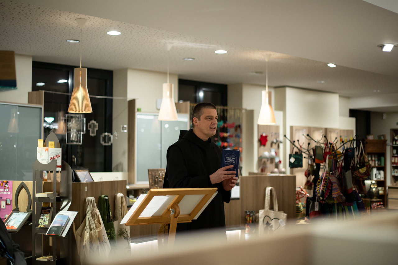 Mit einem Modebuch unter dem Titel "Breaking the habit – Mönche und Mode" schickte die Abtei ihre Gäste und Leser in den April. P. Zacharias Heyes OSB zeigte beim BuchBesuch in der Klosterbuchhandlung, dass es manchmal gar nicht nötig ist, Gott zu suchen.