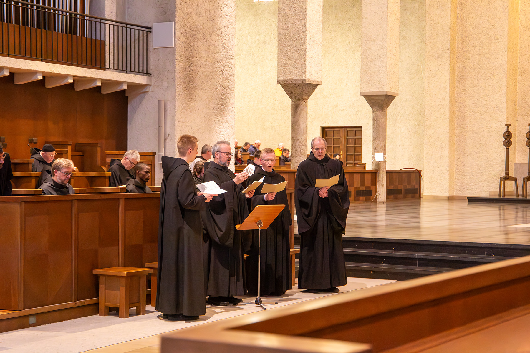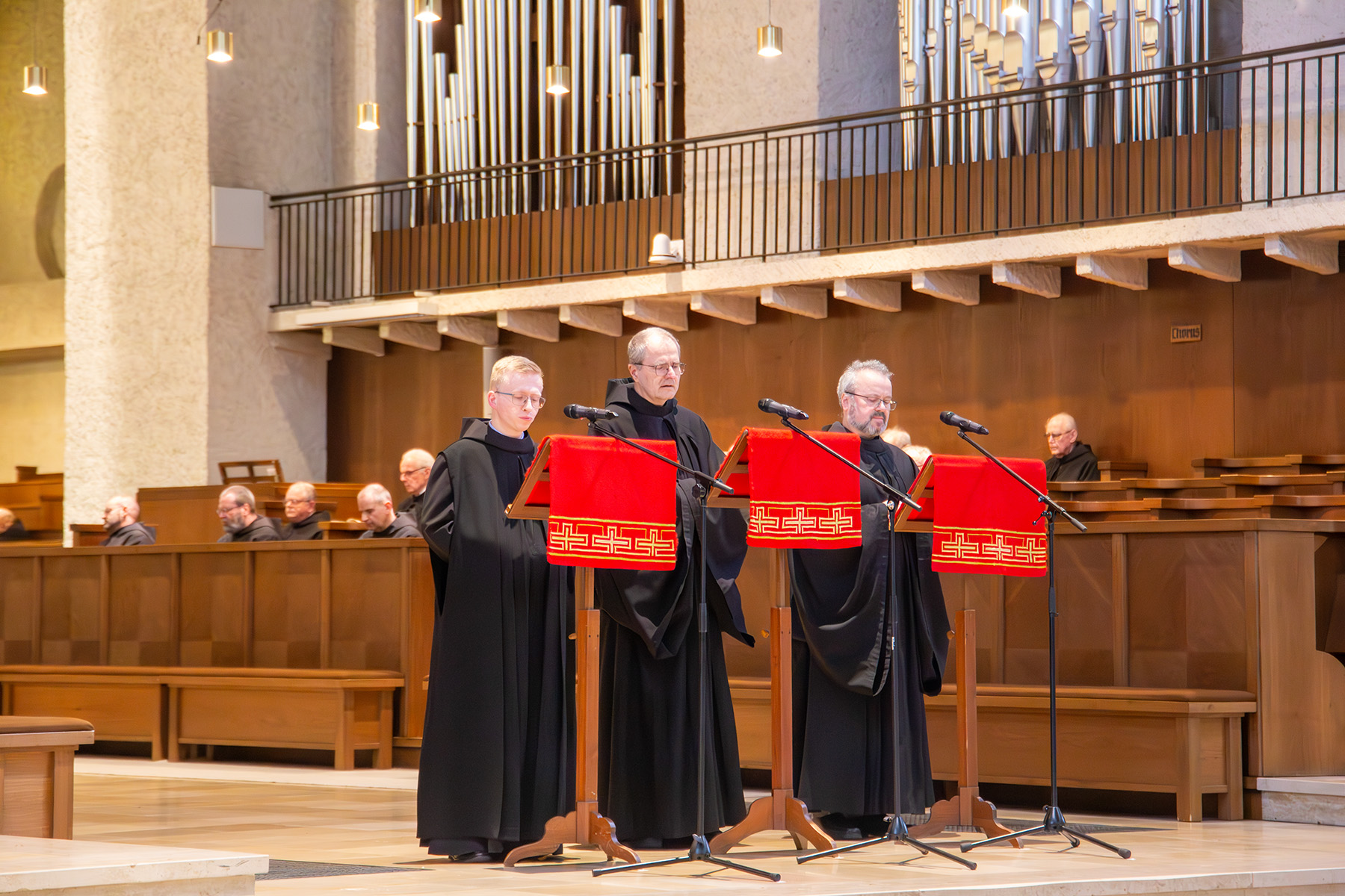 P. Simon, Br. Julian und P. Anastasius singen die Passionsgeschichte