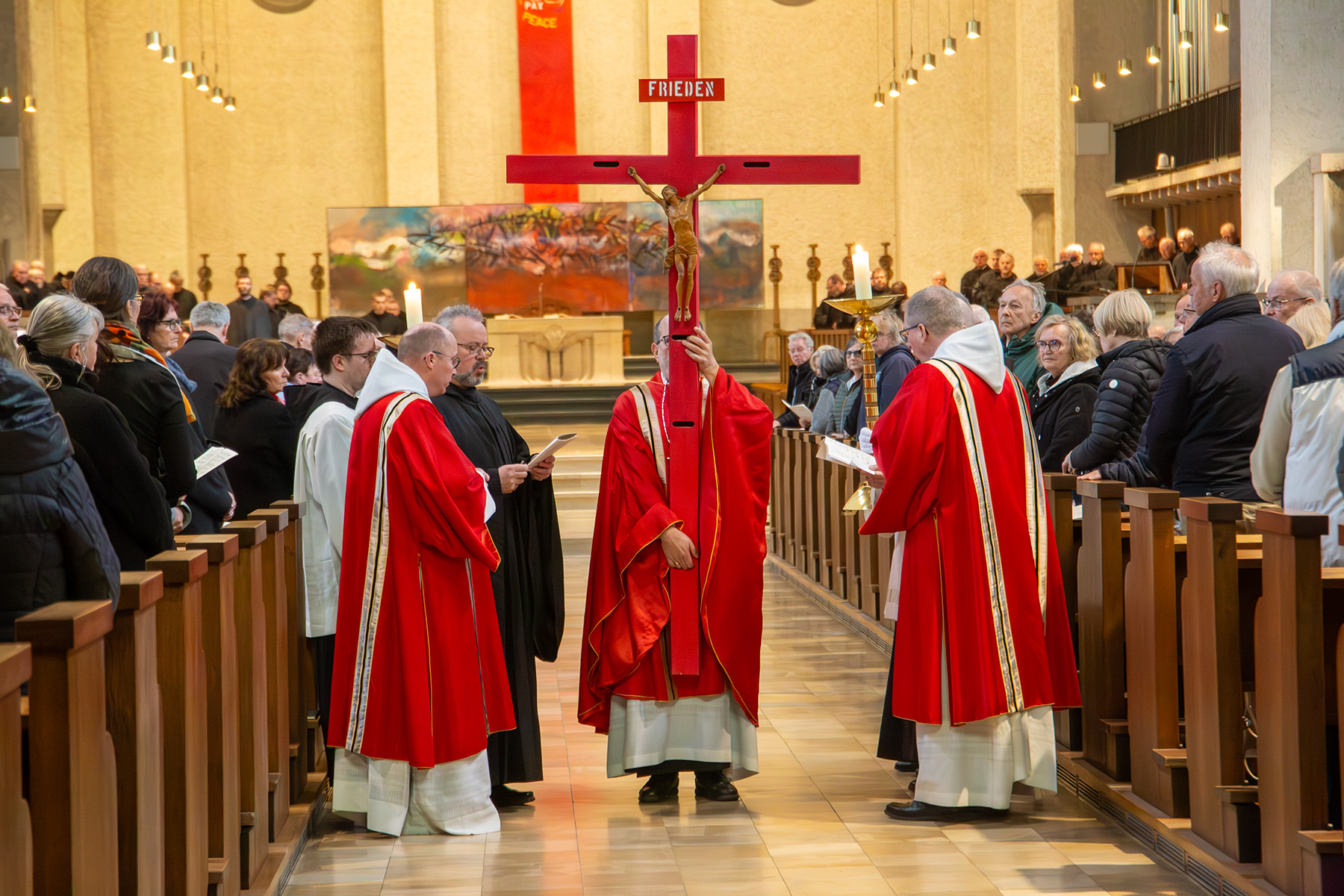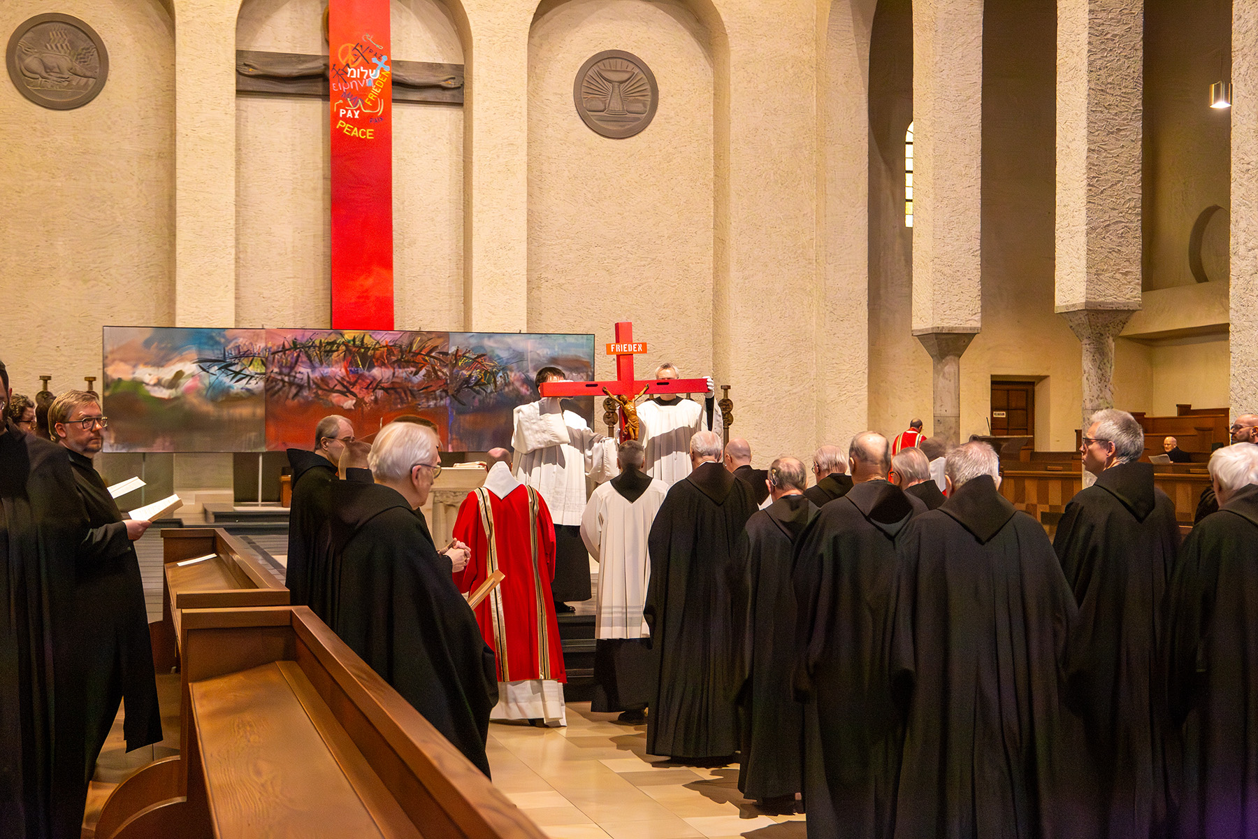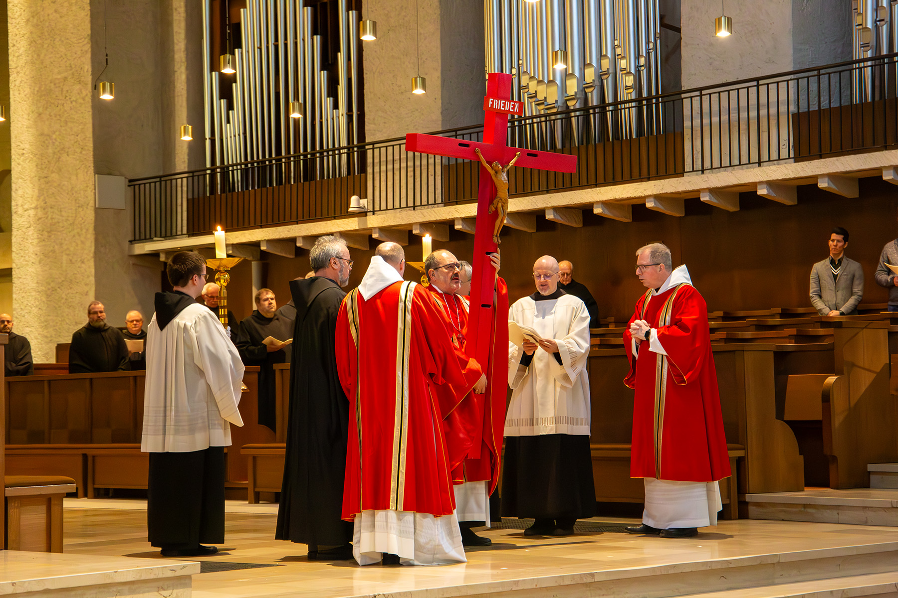Das Kreuz wird in die Abteikirche getragen