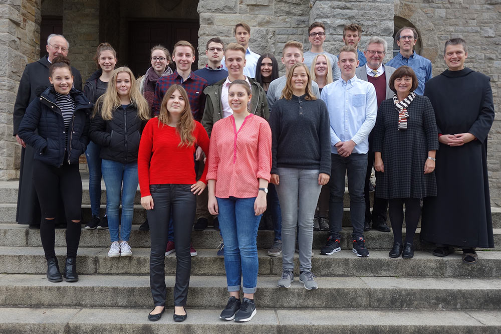 17 Schülerinnen und Schüler des P-Seminars Englisch der Q12 des Egbert- Gymnasiums präsentierten am Samstag, 16. Oktober, die von ihnen entwickelten und eingesprochenen Audioguides für die Abteikirche in englischer Sprache. Bei einem kleinen Festakt im Vestibül der Kirche stellten die Schülerinnen und Schüler ihre Arbeitsschritte vor: zuerst erwarben sie die historischen und theologischen Grundlagen durch Kirchenführungen von P. Franziskus Bühl OSB. Dann mussten die bereits in Deutsch vorliegenden Textvorlagen in ein klares, einfaches Englisch übertragen werden, das alle ausländischen Gäste verstehen können. Schließlich galt es die Texte im Hörstudio auf Kloster Banz einzusprechen.