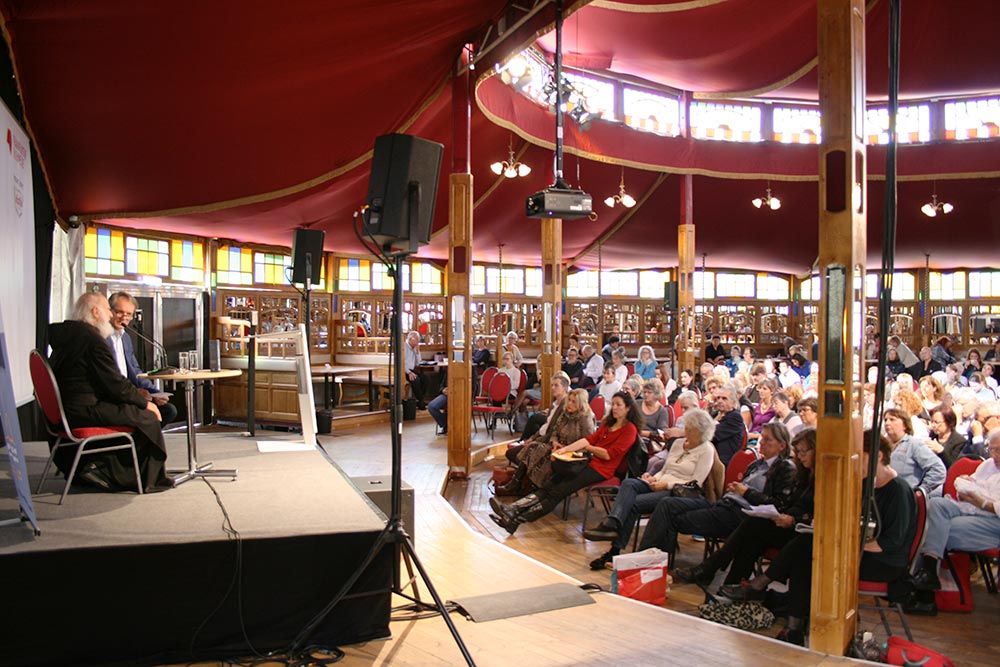 Bis auf den letzten Platz gefüllt war das Lesezelt bei der Veranstaltung mit Pater Anselm. Nach seiner Lesung signierte er seine Bücher, ließ sich aber auch gemeinsam mit Lesern fotografieren und segnete sie auf Wunsch. Mit dem bekannten niederländischen Maler Ton Schulten stellte er zudem das gemeinsam verfasste Buch „Das Geheimnis des Weges“ auf dem Autorensofa des Katholischen Medienverbands vor. Dort nahm auch Pater Christoph Platz und sprach über sein Buch „Und sie bewegt sich doch“. Darin geht es um das spannende Verhältnis von Astronomie und Glauben.