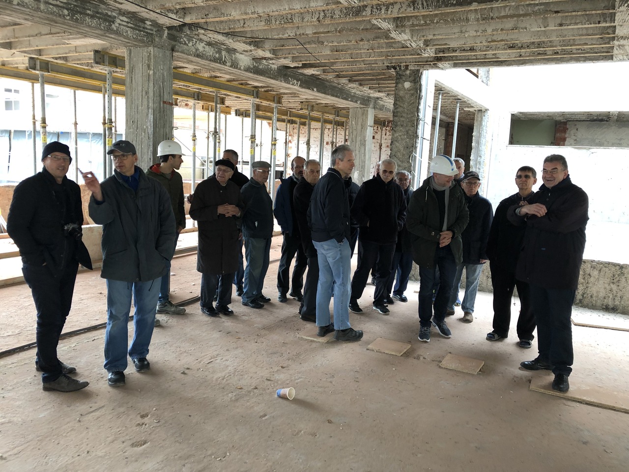 Achtzehn Mitbrüder einschließlich Abt Michael sind am Samstag vom leitenden Architekten Reinhold Jäcklein mit seinen beiden Mitarbeitern Stephan Hofmann (Bauleitung) und Sebastian Sterk (Planung und Sicherheitskoordinator) durch die Baustelle am Egbert-Gymnasium geführt worden. Mit großem Interesse und dem Hintergrundwissen aus den Planungen verfolgten sie den Erklärungen Jäckleins zum derzeitigen Stand der Bauarbeiten. Der Bauleiter Stephan Hofmann wies darauf hin, dass derzeit fast alle Arbeiten im Rahmen des Zeitplanes seien.