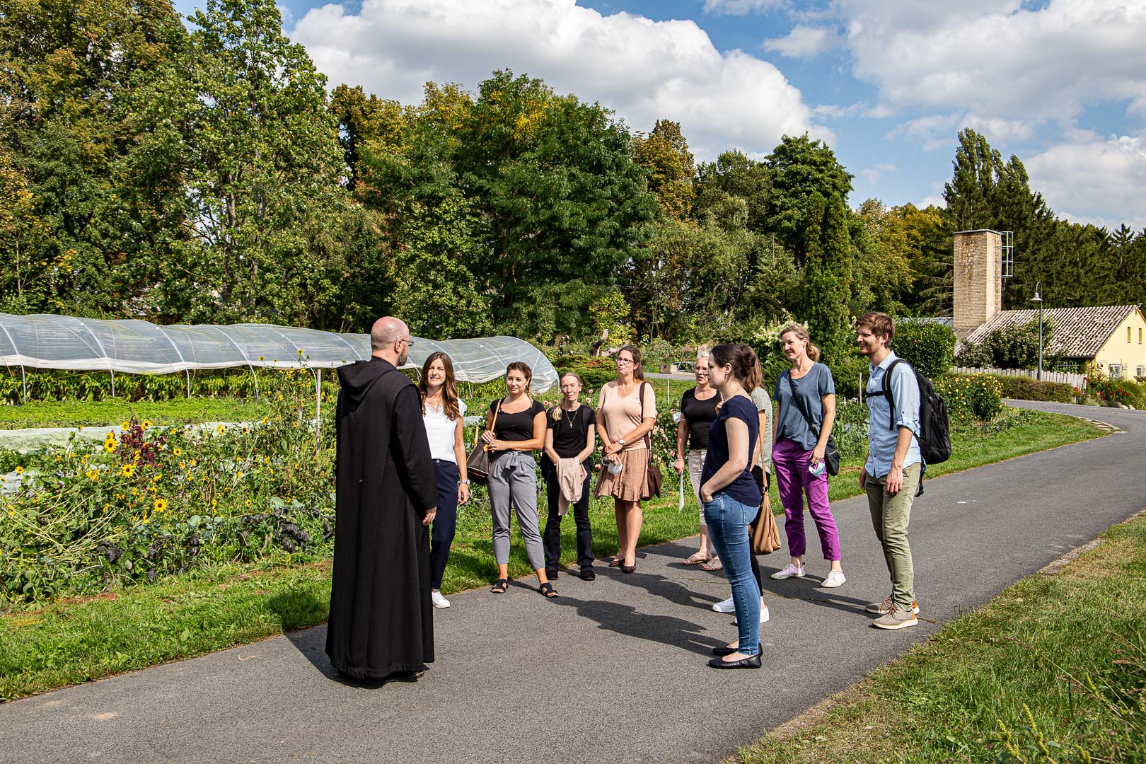 Bei einem Einführungstag für neue Lehrkräfte haben neun Lehrerinnen und Lehrer in der Abtei Münsterschwarzach nicht nur ihre neue Schule, das Egbert-Gymnasium kennen gelernt. Bereits zu Beginn, beim gemeinsamen Besuch der Mittagshore, wurde die Verbundenheit zwischen Schule und Kloster deutlich. Nach einem gemeinsamen Mittagessen mit Schulseelsorger Br. Melchior Schnaidt OSB stand ein Treffen mit Schulleiter Markus Binzenhöfer auf dem Tagesplan. Im Anschluss zeigte Br. Melchior bei einer Klosterführung die Vielseitigkeit der Abtei mit ihren einzelnen Betrieben. Auch die Besonderheiten der Klosterschule, wie etwa durch die Klassenpatenschaften der Mönche oder den Stellenwert des geistlichen Lebens im Schultalltag, wurden von ihm erklärt. Ein Gespräch mit Abt Michael schloss den Tag ab.