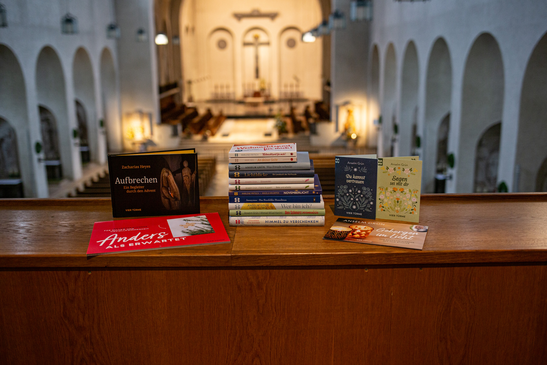 Mit gleich drei Adventskalendern hat der Verlag für jede und jeden den passenden Begleiter in der Vorweihnachtszeit: den beliebten Adventskalender aus dem Kloster "Geborgen im Licht" von P. Anselm Grün, den Postkartenkalender "Weihnachtspost für mich" von Marlene Fritsch sowie den etwas anderen Kalender von Anke Keil unter dem Titel "Anders als erwartet".