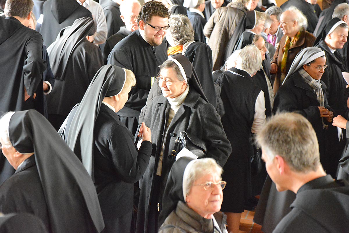 Über 200 fröhlich gestimmte und entspannte Ordensleute aus der gesamten Diözese Würzburg sind am Samstag, 14. November, in der Abtei Münsterschwarzach zusammen gekommen. „Wir wollten im Jahr der Orden an einem gemeinsamen Tag etwas für uns selbst tun, etwas, das uns Ordensleuten gut tut“, sagte Abt Michael Reepen OSB bei der Begrüßung. So stand die zentrale Veranstaltung zu dem von Papst Franziskus für 2015 ausgerufenen „Jahr der Orden“ im Bistum Würzburg ganz im Zeichen der Begegnung und des Miteinander.