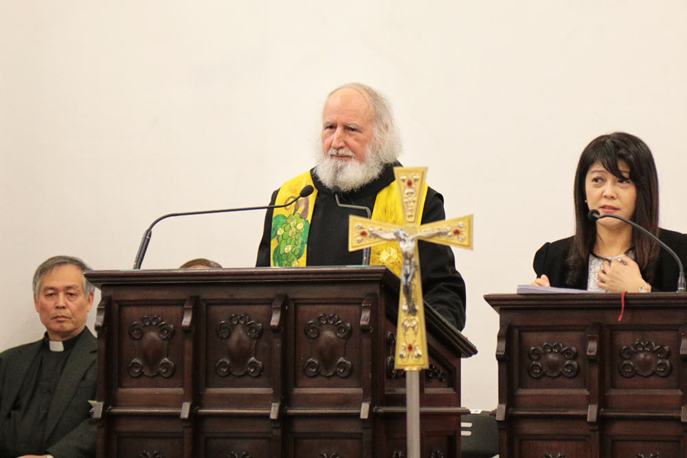 Ein Höhepunkt der Reise war ein großer ökumenischer Gottesdienst, gemeinsam mit dem Erzbischof von Taipeh, John Hung SVD, und dem Generalsekretär der Presbyterianischen Kirche, Lyim Hong-Tiong. Daran nahm auch der katholische Vizepräsident der taiwanesischen Regierung Chen Chien-jen teil. Bei diesem Gottesdienst ging es um die Bewältigung des Unrechts, das vor 70 Jahren durch die chinesischen Truppen unter Tschiang Kai-schek an der Elite des Landes geschehen ist. In seiner einstündigen Predigt sprach Pater Anselm über "Barmherzigkeit und Gerechtigkeit" und die deutschen Erfahrungen bei der Vergangenheitsbewältigung. Nach dem Gottesdienst lud der Vizepräsident den Erzbischof, den Generalsekretär und einige Pastoren und deutsche Missionare zum Essen ein. Vizepräsident Lyim Hong-Tiong schätzt die Bücher von Pater Anselm Grün. Seine Tochter arbeitet als Seelsorgerin und war bei fünf Vorträgen dabei.