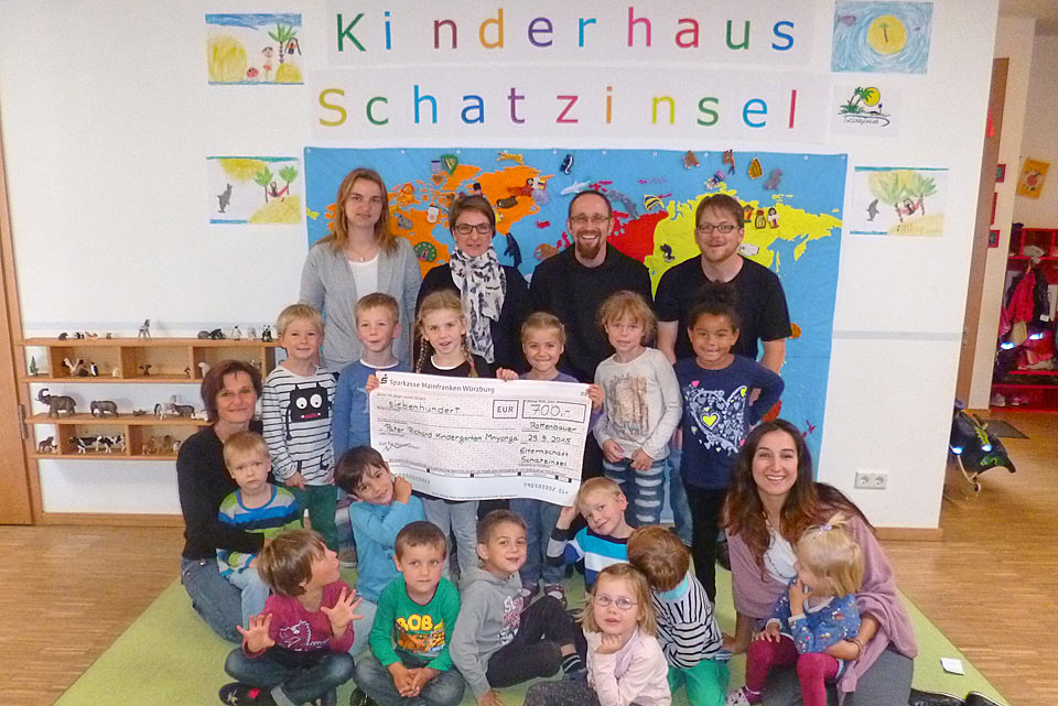 Zu einer „Reise um die Welt“ (so der Titel des Jahresmotto) waren Eltern und Kinder im abgelaufenen Kindergartenjahr eingeladen. Es wurden verschiedene Kontinente bereist, unterschiedliche Lebensstile kennengelernt und Köstlichkeiten entdeckt, die von Eltern aus verschiedenen Herkunftsländern mitgebracht wurden. Auch der Elternbeirat hat sich begeistern lassen und für das Sommerfest eine Spendenaktion ins Leben gerufen. Die dabei zusammen gekommene Summe stockte der Elternbeirat selbst auf 700 Euro auf.