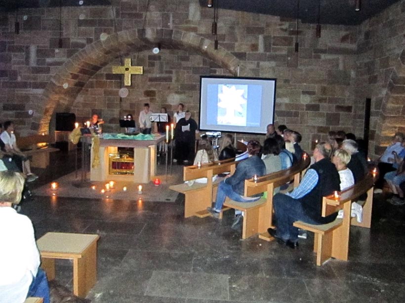 Am Sonntagabend vor dem Fest Peter und Paul gab es in der Krypta ein musikalisches Konzert der besonderen Art. Die Gruppe „Motive“ aus Burgebrach veranstaltete eine Andacht mit neuem geistlichen Liedgut unter dem Motto „SeeleSingen“. Gäste aus nah und fern konnten sich hineinsingen in die frohe Botschaft, Atem holen und Gott loben. Das Quintett brachte mit spirituellen Impulsen zwischen den Liedern die Seelen zum klingen. Über einen Spendenerlös von 300 Euro dürfen sich die Kinder unseres Aids-Waisen-Projekts in Tororo/Uganda freuen. Dieses Projekt begann mit gemeinsamem Musizieren und fördert heute die Schulausbildung von ca. 60 Aidswaisenkindern. Musik kann viel bewegen…