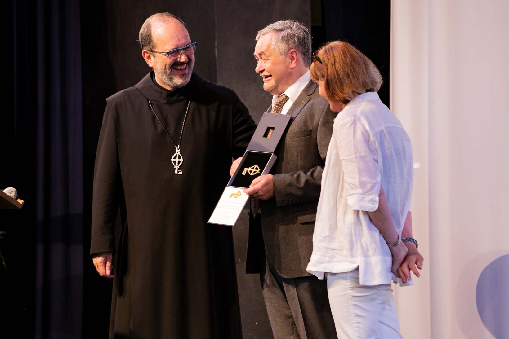 Den goldenen Schlüssel der Abtei Münsterschwarzachfür ihre besonderen Verdienste um das Egbert Gymnasium. Ein Replik des karolingischen Schlüssel, in Silber vergoldet gefertigt in unserer Goldschmiede.