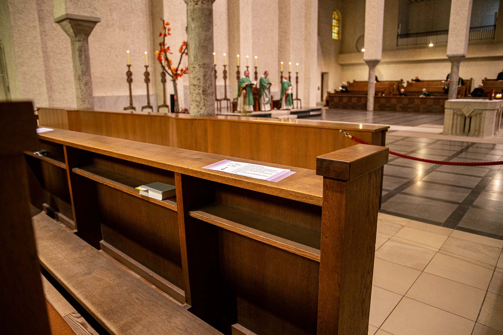 Schon früh ist in der Abtei Münsterschwarzach der Weltmissionssonntag abgesagt worden. Zum Klosterfest sind in den vergangenen Jahren tausende Besucherinnen und Besucher gekommen - das geht aufgrund der Corona-Pandemie nicht. Gefeiert wurde der Tag allerdings doch. Nur anders. Statt afrikanischer Gesänge erklang gregorianischer Choral. Die Kirche dennoch mit Abständen bis auf den letzten Platz voll.