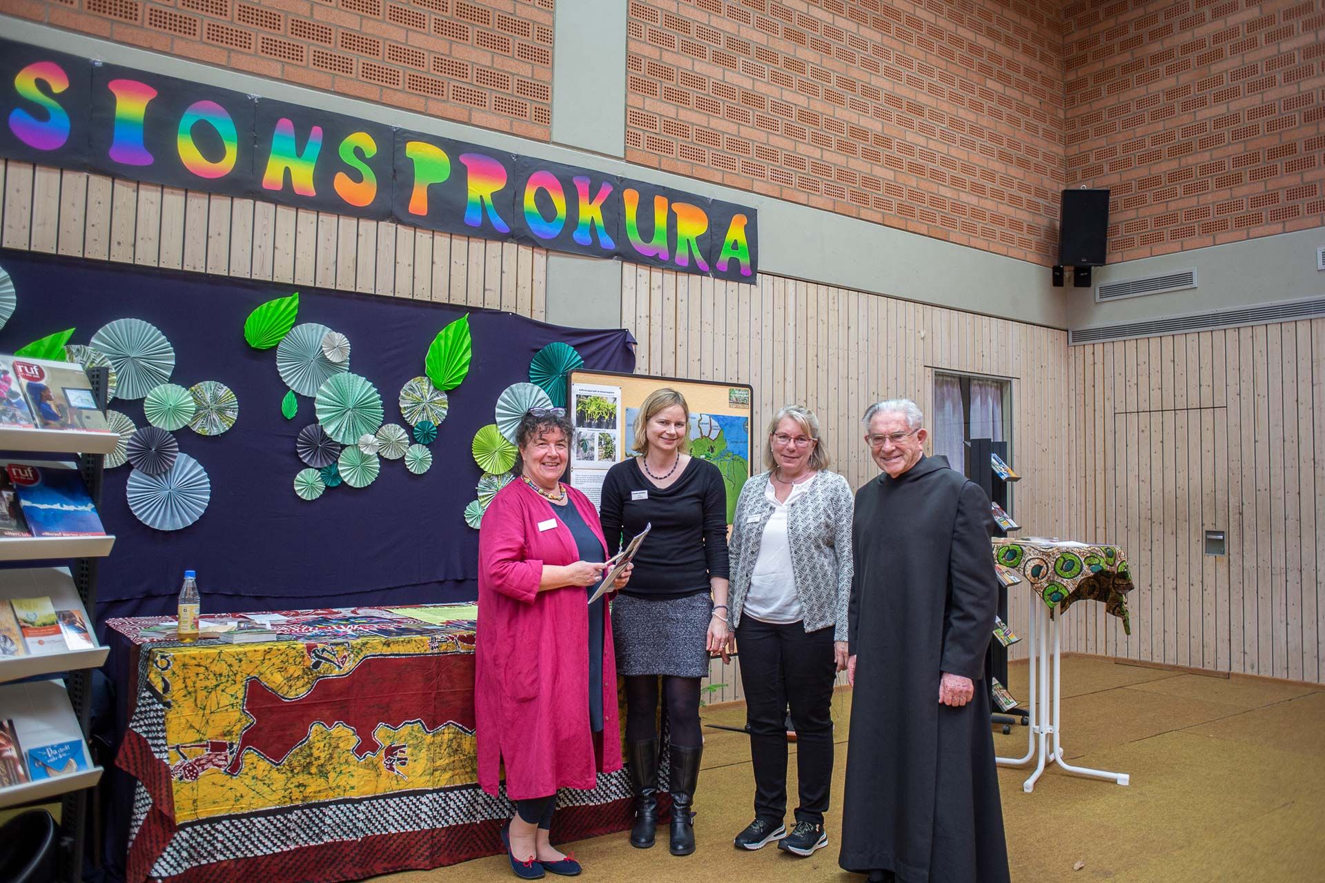 Bei der Hausmesse im Fair-Handel präsentierten zahlreiche Lieferanten ihre fairen Produkte und erklärten, wie sie direkt bei den Produzenten vor Ort für bessere Lebensbedingen sorgen können. Brasilianische Musik sorgte für eine ganz besondere Stimmung. Nebenan im Vier-Türme-Verlag hielt Br. Wolfgang Sigler einen Workshop zum Thema „Spiritualität mit Gebrauchsspuren“ und stellte seine „Spirituelle Toolbox“ vor. Bei zwei Führungen zum Ökologieprojekt gab P. Christoph Gerhard Einblicke in den regenerativen Energiepark des Klosters.