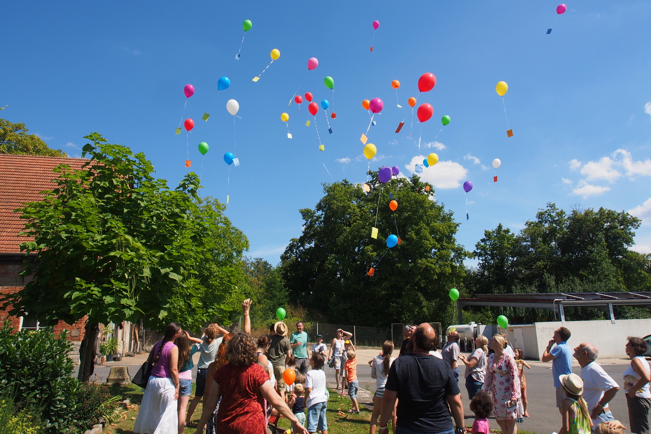 In einem bewegenden Ritual bekam jede Familien eine „Familienstele“, als Symbol für die Gemeinschaft in der Familie und Gott in ihrer Mitte. Dabei haben sich alle an den Beginn des Weges mit Gott, an die Taufe, erinnert.In vielfältiger, kreativer und gestalterischer Form haben die Kinder ihre Träume auf der Stele sichtbar gemacht. Sie übergaben die Stele an ihre Eltern, die ihre Träume gestalterisch einfügten. Am Ende arbeiteten Eltern und Kinder mit viel Freude an dem gemeinsamen Werk. Es war in dieser Einheit eine „WERDELUST“, die wunderbare Familienstelen hervorbrachte. Diese Familienstelen wurden in einer Vernissage auf dem Abteigelände aufgestellt. Gemeinsam mit einigen Mönchen und bei einem Glas Sekt wurden die Stelen von den Familien vorgestellt. Dazu haben die Kinder ihre selbst geschriebenen „Elfchen“ zur Stele vorgetragen. Es war ein intensiver, bewegender Nachmittag, in dem Familienträume sichtbar und hörbar wurden. Nach einem lustigen Grillabend mit fröhlichem Singen und einer guten Gemeinschaft endete der Tag mit der Komplet. Das Konventamt am Sonntag wurde vom Familienkurs mitgestaltet, Lesung, Fürbitten und wir zwei fröhliche Lieder: „Sei kein Frosch“ und „Ein Volltreffer bist du“. Danach waren wir beim Kurs der Steinbildhauer zu Gast und haben die erschaffenen Werke in der Vernissage bewundert. Zum Abschluss dieser intensiven Familienkurstage haben wir unsere ganz persönlichen Träume mit bunten Luftballons und dem Lied „99 Luftballons“ in den blauen Sommerhimmel fliegen lassen. Die Leichtigkeit, Freude und Herzlichkeit dieser Tage war bei allen Familien im Abschied nehmen zu spüren. Der nächste Kurs „Familien und Kloster“ findet vom 1. – 4.8.2019 in derAbtei Münsterschwarzach statt.