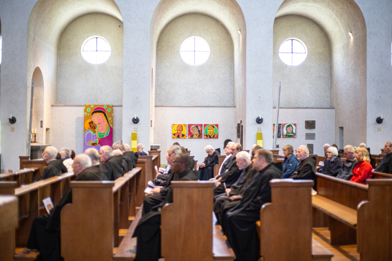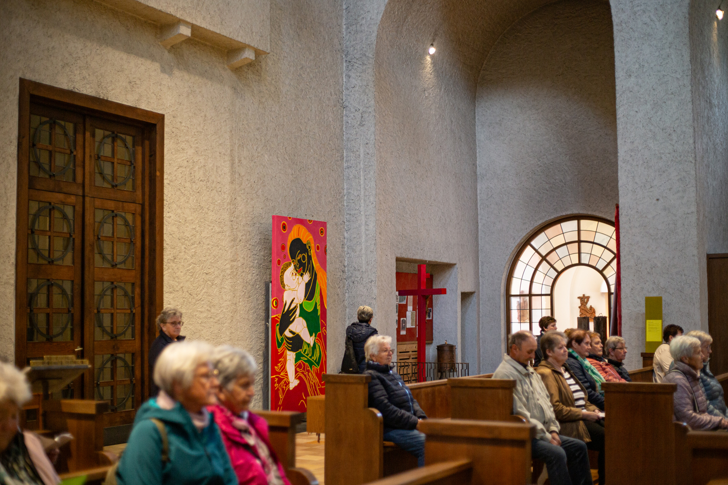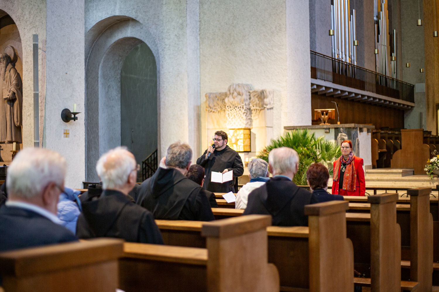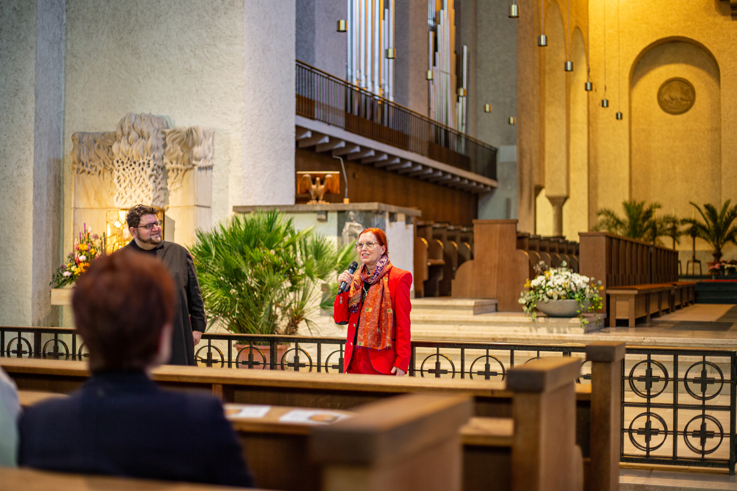 Ein weiteres Highlight war am späten Nachmittag mit der Ausstellungseröffnung von Künstlerin Eva Bur am Orde geboten. Unter dem Titel „PAX!“ zeigt sie farbenfrohe PopArt-Werke in der Abteikirche. Ihr Ansinnen: Dem Frieden ein Gesicht geben. Menschen, die mit ihrem Leben und Wirken auf außergewöhnliche Weise für den Frieden eingetreten sind, Männer und Frauen aus allen Religionen und Kulturen. Eine weitere Besonderheit: ein „Sanctus Benedictus“ – ein Porträt des Heiligen Benedikt anlässlich dieser Ausstellung als neues Element der Serie. Die Ausstellung ist über die Büchertage hinaus bis zum 22. Juni zu sehen.