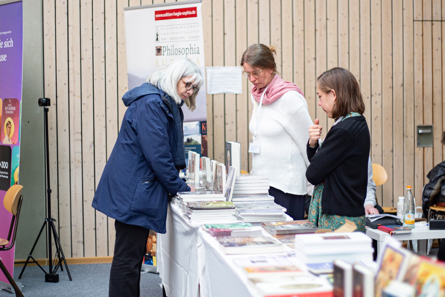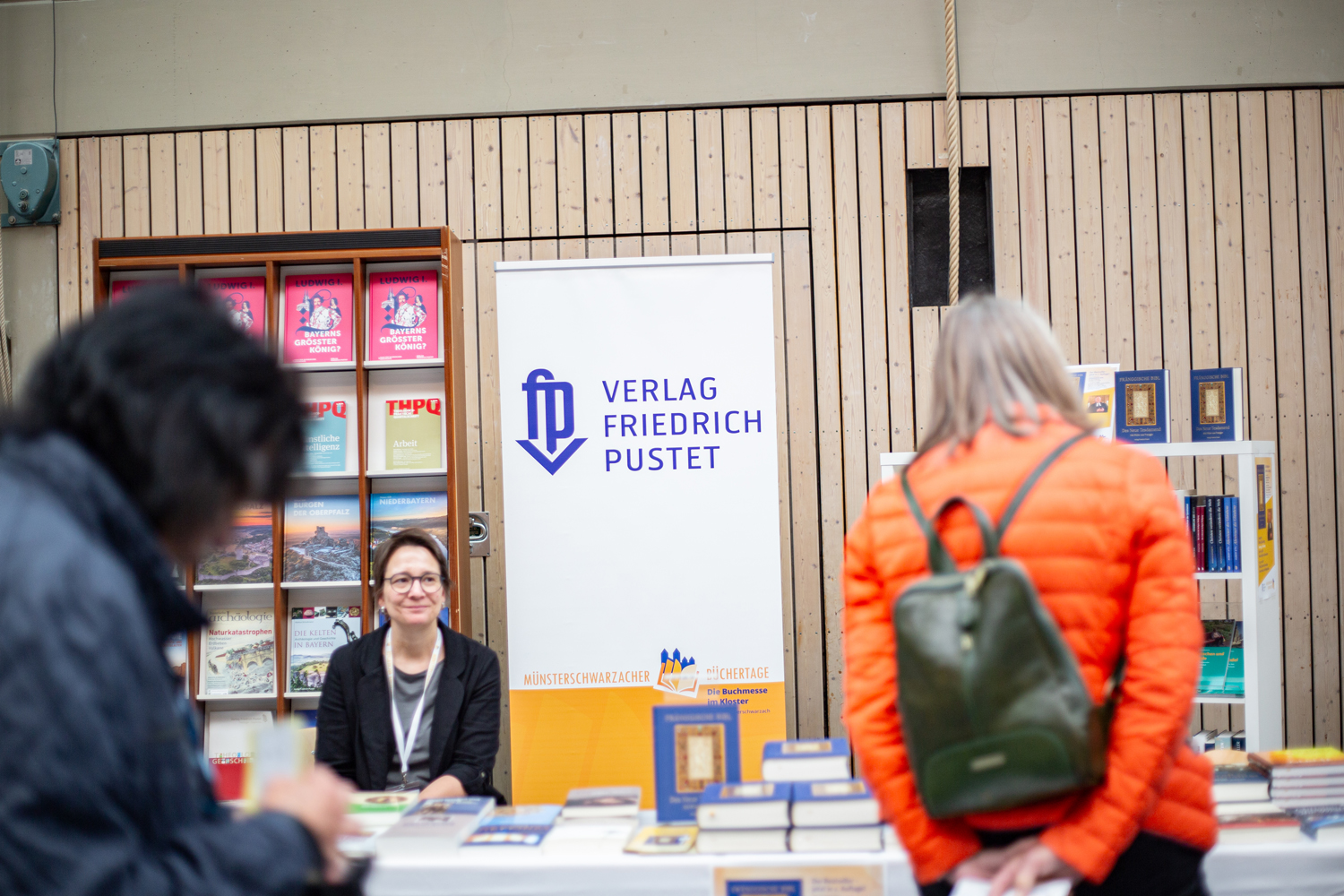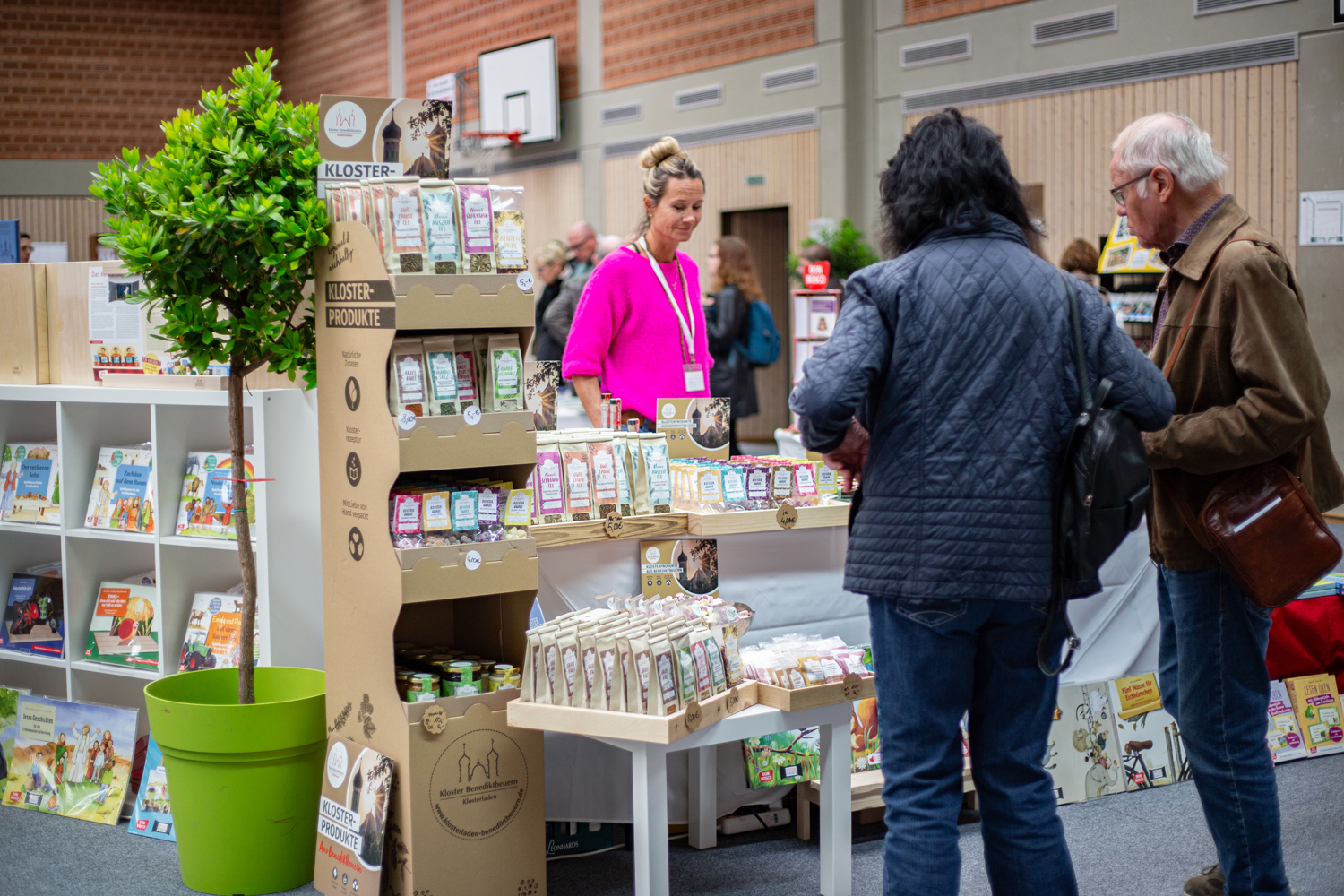 Mit vielen Besucherinnen und Besuchern haben die zweiten Münsterschwarzacher Büchertage begonnen. Schon auf dem Kirchplatz luden die ersten Stände von Trusted Craft Design, der Druckerei Benedict Press, dem Fair-Handel und der Klostergärtnerei zum Stöbern, Entdecken und Verweilen ein. Am Stand der Druckerei konnte mit einer traditionellen Buchpresse ein tolles Mitbringsel gemacht werden, die Gärtnerei verkaufte eigens gezogene Bio-Jungpflanzen. In der großen Messehallte erwartete die Gäste eine Vielfalt an Verlagen mit ihrem aktuellen Programm: von Kinderbüchern bei Don Bosco, die deutsche Akademie für Kinder- und Jugendliteratur über die Bandbreite an renommierten christlich-spirituellen Verlagen wie echter, Herder, Chrismon, Claudius, eos, Verlag Neue Stadt. Tyrolia, Friedrich Pustet, dem Pilger-Verlag, Michaelsbund und natürlich dem klostereigenen Vier-Türme-Verlag bis zu orthodoxen Verlagen und Medien.
